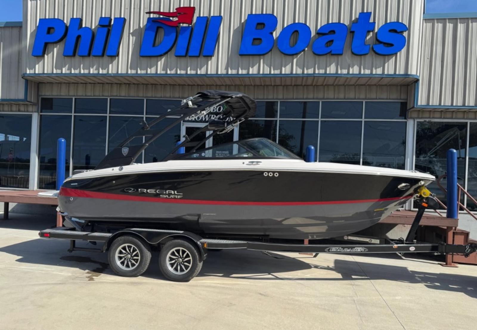 The 2025 Regal LS2 Surf is a brand-new Bowrider measuring an impressive 22.33 feet in length, offering ample space for friends and family to relax, socialize, and enjoy the water. Regal’s commitment to quality and innovation is evident in every detail, from the bold hull color in Black to the striking Flame Red bootstripe and Graphite bottom color. The Titanium accents add a touch of sophistication, making this boat as visually appealing as it is functional. Whether you’re cruising along the shoreline or anchored at your favorite spot, the LS2 Surf’s modern design ensures you’ll turn heads wherever you go.