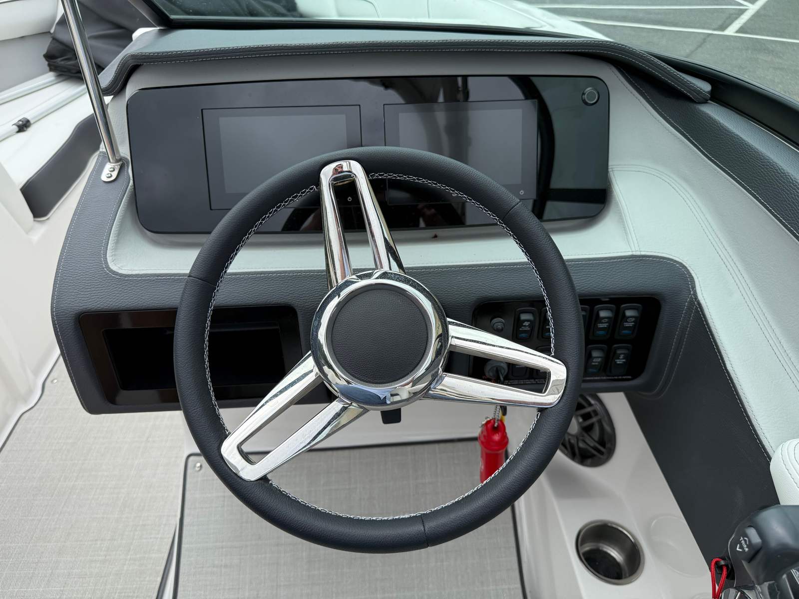 The Regal LS2 LTD Bowrider is packed with premium features designed to enhance your boating experience. Step into the cockpit and enjoy the comfort of the Seagrass Mat, which offers a plush, non-slip surface that’s both stylish and practical. The Newport Blue canvas provides shade and protection, while the Titanium accents elevate the boat’s modern look. Navigation is a breeze thanks to the Dual Garmin 743 displays, giving you access to advanced charts, GPS, and system monitoring at your fingertips.The boat’s bottom color, Tahiti Beach White, pairs beautifully with the Newport Blue hull, creating a visually stunning profile. The bootstripe matches the bottom color for a cohesive and elegant appearance. Practicality is built in with the Dual Battery Switch, tray, and cables, ensuring reliable power management and peace of mind during longer outings. The innovative PowerTower S2 in white adds versatility, allowing you to easily adjust the tower for watersports or storage.