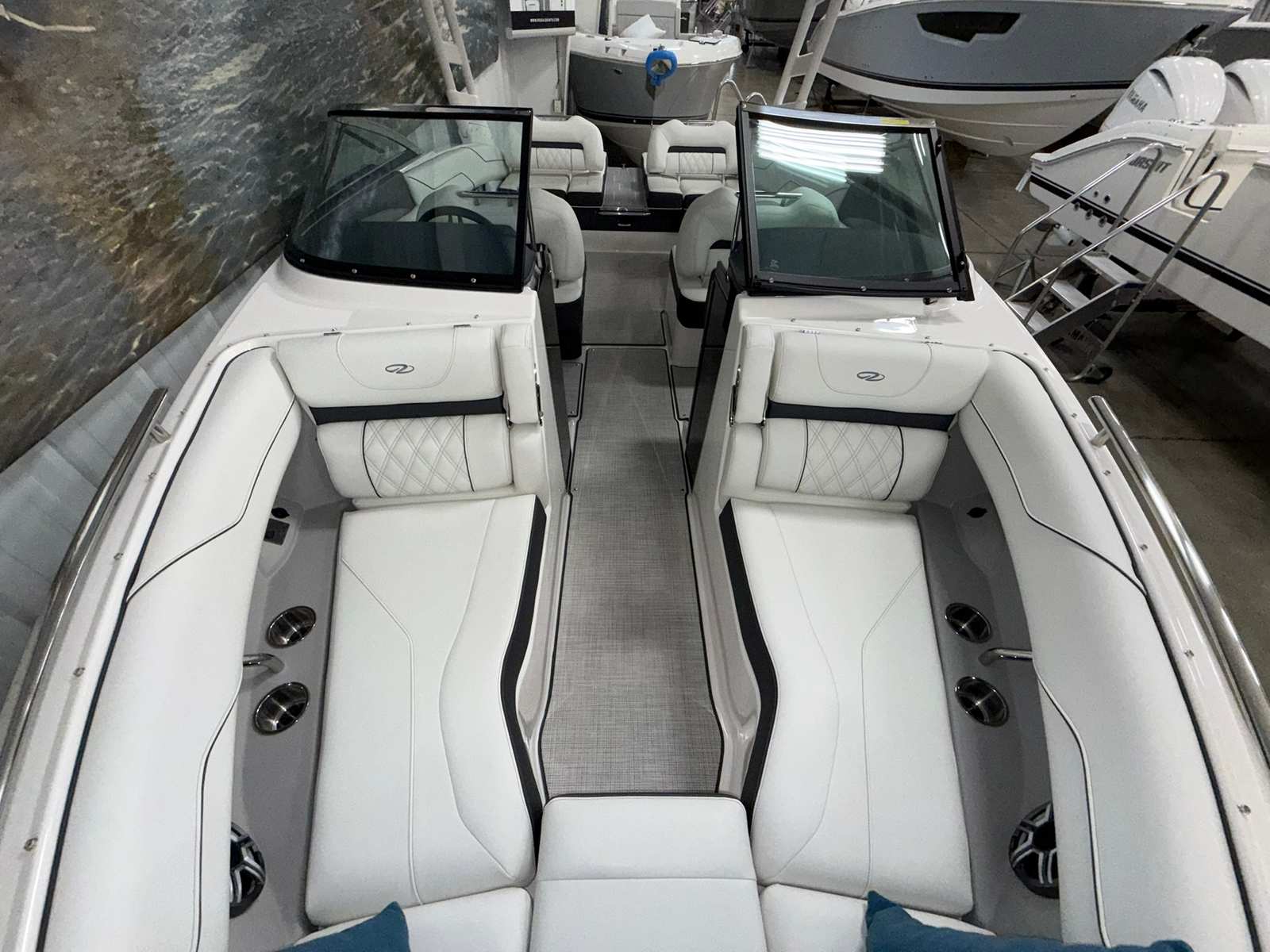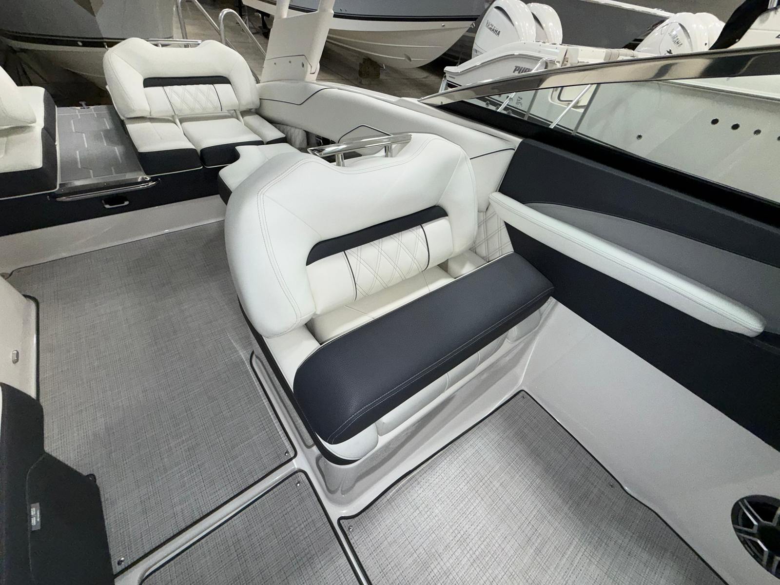 The Regal LS4 is as practical as it is luxurious. Its user-friendly design makes docking and maneuvering a breeze, thanks to the integrated Bow Thruster and Bow Walk-Thru Doors. The included covers help protect your boat from sun and weather, preserving its beauty and value for years to come. The Battery Charger keeps your systems powered up and ready, so you can focus on enjoying your time on the water. Storage is thoughtfully integrated throughout the LS4, allowing you to stow gear, water toys, and personal items with ease. The Cockpit Seagrass Mat not only adds comfort but is also easy to clean, making maintenance simple and stress-free. Every detail of the LS4 is designed to enhance your boating experience, from the moment you step aboard to the end of your adventure.