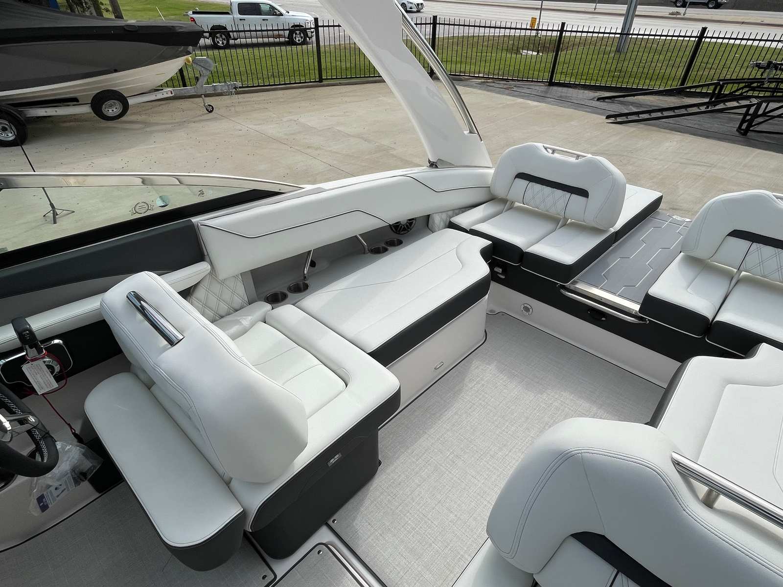 The Regal LS4 is designed with practicality in mind, making ownership as enjoyable as your time on the water. The travel storage cover protects your investment from the elements, while the dual battery switch ensures reliable power management for all your onboard electronics. The cockpit seagrass mat is easy to clean and maintain, keeping your boat looking fresh after every outing. Docking and maneuvering are a breeze thanks to the responsive handling and efficient design, allowing you to spend more time enjoying the water and less time worrying about logistics.