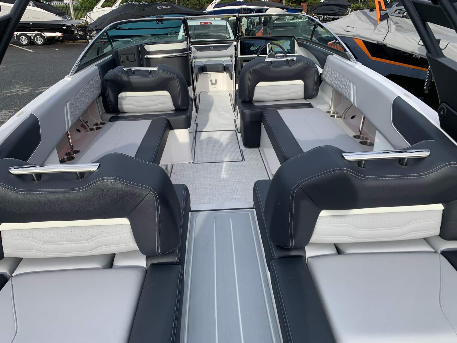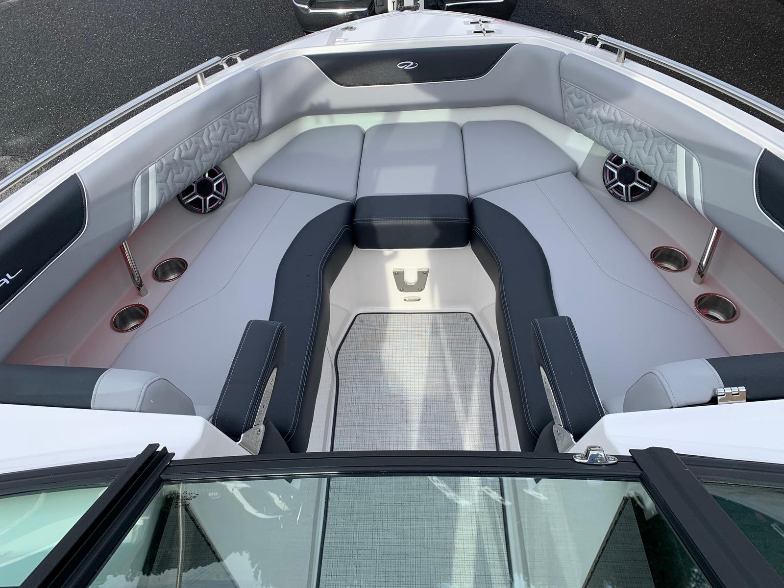 The Regal LS6 Surf is designed with both aesthetics and functionality in mind. Its exterior showcases a harmonious blend of Black, Steel Grey, and Tahiti Beach White, complemented by a White swim platform that invites you to dip your toes in the water or launch your next aquatic adventure. The interior features Z1LGC Lunar Grey - Chil, Z2BLC Black - Chil, Z3BLC Black - Chil, Z4PWS Pure White - Standard, and Z5PWS Pure White - Standard, creating a sophisticated and inviting atmosphere for you and your guests. Every detail is thoughtfully crafted to enhance your time on the water, from the spacious bow seating to the ergonomic helm.