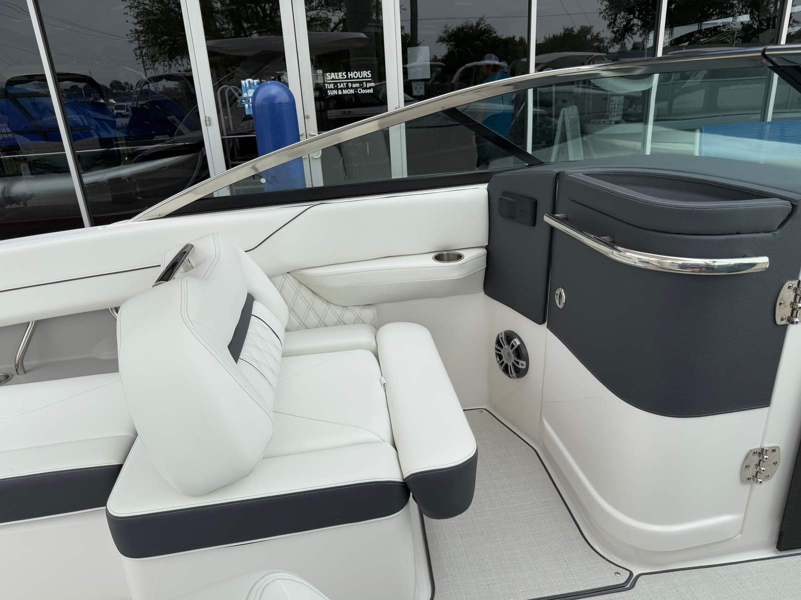 Step aboard the Regal LS6 and discover a world of comfort and convenience. The boat’s special features are designed to enhance every aspect of your boating experience. The cockpit is adorned with a luxurious Seagrass Mat, offering a soft and stylish surface that’s both comfortable and easy to maintain. The SeaDek Swim Platform provides a safe and slip-resistant area for swimming, sunbathing, or preparing for water sports, ensuring everyone on board can enjoy the water with confidence.For added protection and peace of mind, the LS6 comes equipped with a travel storage cover in black, keeping your investment safe from the elements when not in use. The black canvas adds a touch of elegance while providing shade and shelter during sunny days. Practicality meets innovation with the dual battery switch, tray, and cables, allowing for seamless power management and extended time on the water. The onboard battery charger ensures your boat is always ready for adventure, minimizing downtime and maximizing fun.