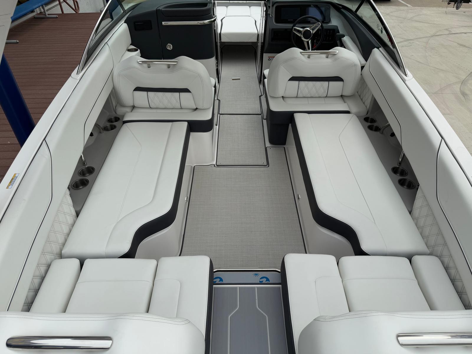 Practicality is at the heart of the Regal LS6 Bowrider’s design. The ample storage options allow you to stow gear, snacks, and personal items securely, keeping the deck clutter-free and organized. Docking is a breeze thanks to the boat’s manageable length and responsive controls, making it ideal for both seasoned captains and those new to boating. The fuel-efficient engine helps you make the most of every trip, reducing operating costs and environmental impact.The dual battery system ensures reliable power for all your electronics and accessories, while the battery charger keeps everything running smoothly. The travel storage cover and durable canvas protect your boat from sun, rain, and debris, preserving its beauty and value for years to come. The SeaDek Swim Platform and Seagrass Mat add comfort and safety, making it easy to transition from boating to swimming or relaxing on deck.