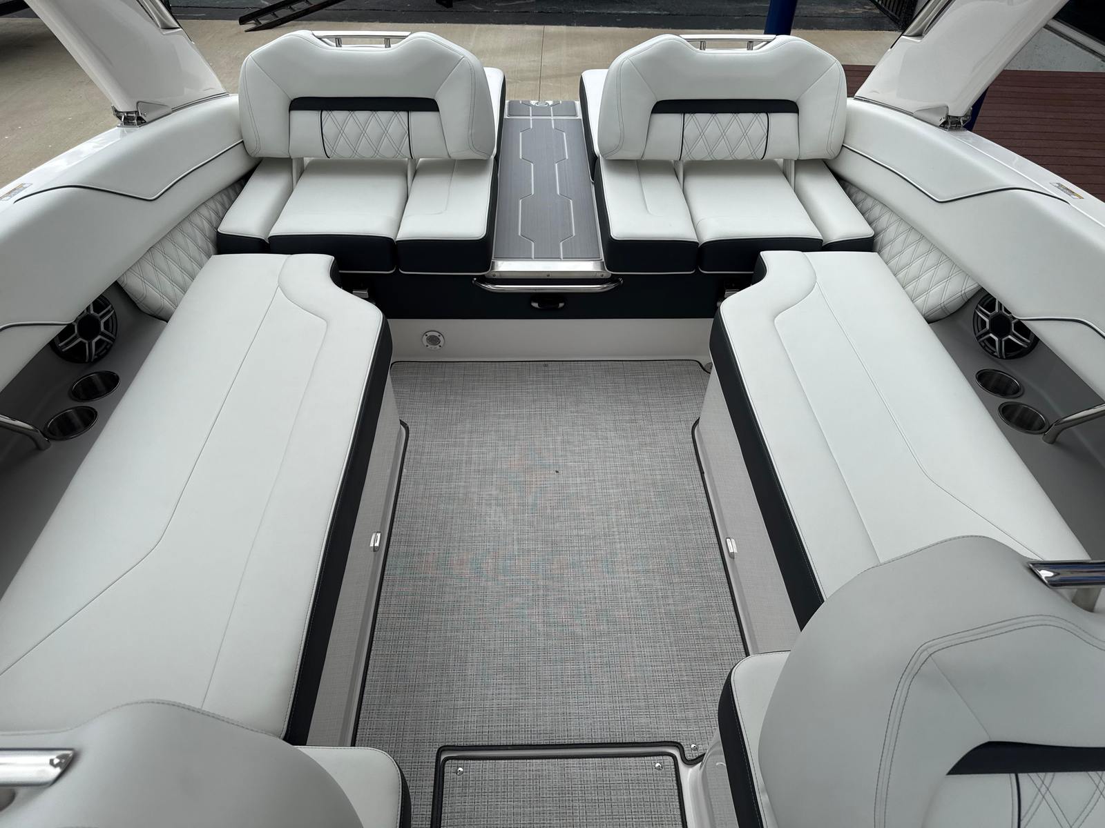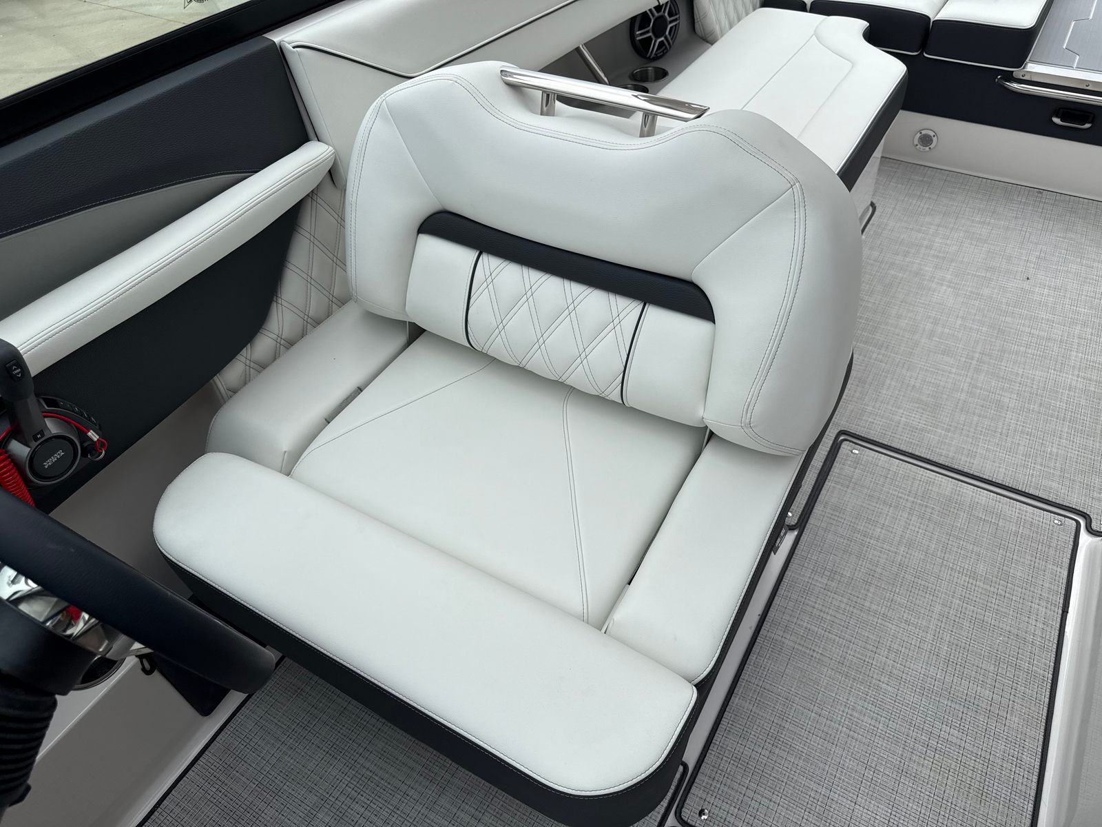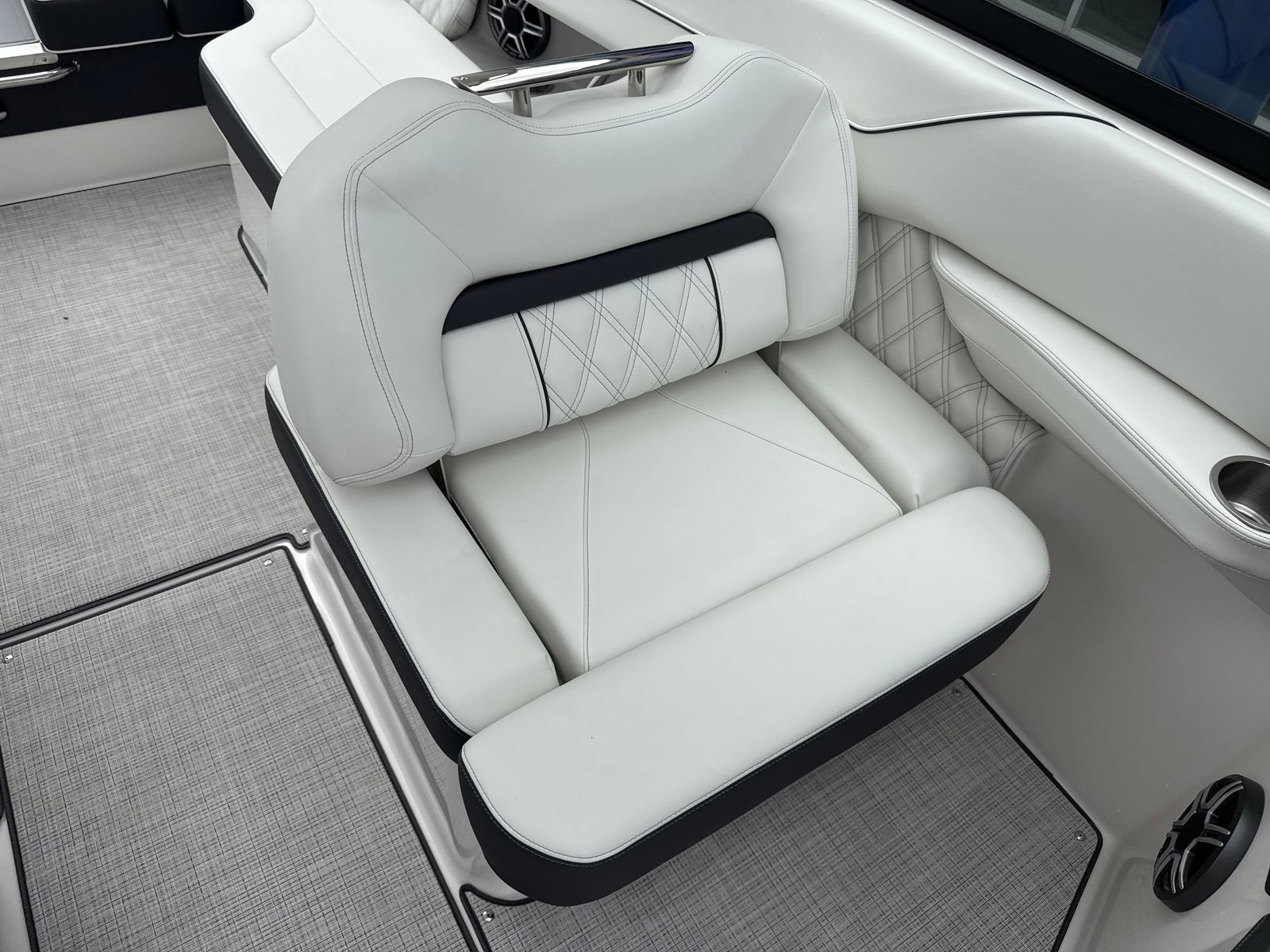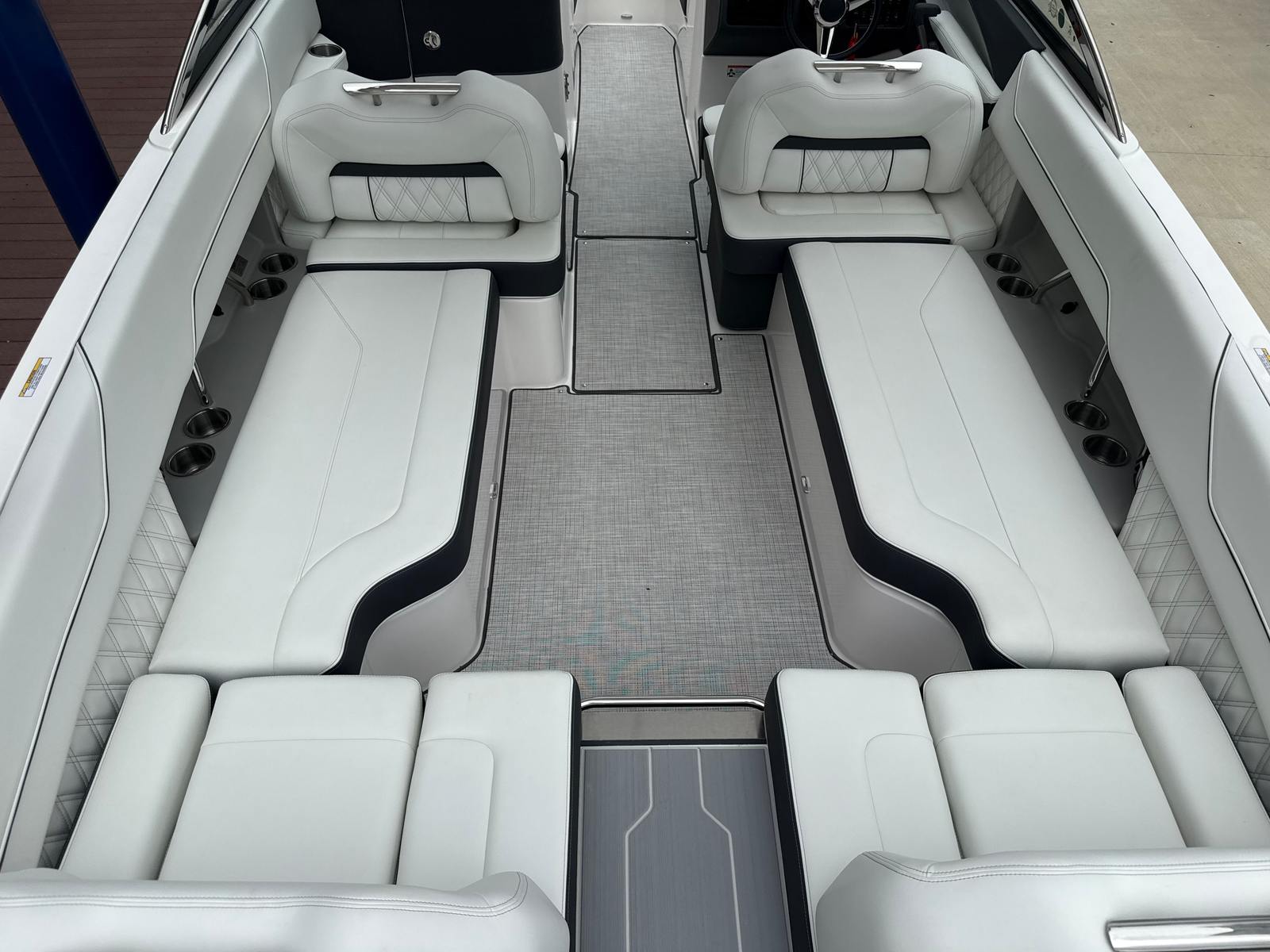 Owning the Regal LS6 Bowrider is all about maximizing your enjoyment on the water. The spacious layout and plush Titanium interior invite you to relax, socialize, and soak up the sun with family and friends. The open bow design creates a welcoming atmosphere, perfect for lounging, sunbathing, or taking in panoramic views. The thoughtful arrangement of seating and storage ensures that everyone has room to spread out, while still keeping gear and essentials organized and accessible. With its powerful engine and agile handling, the LS6 is equally suited for thrilling water sports, leisurely cruises, or anchoring at your favorite swimming spot.