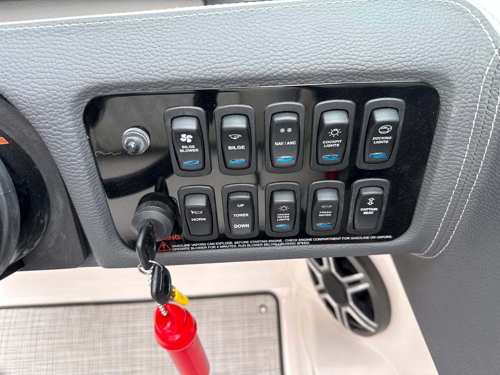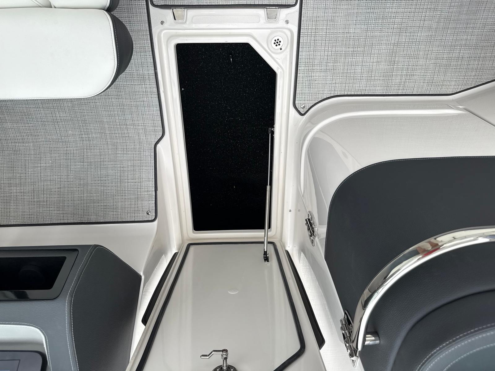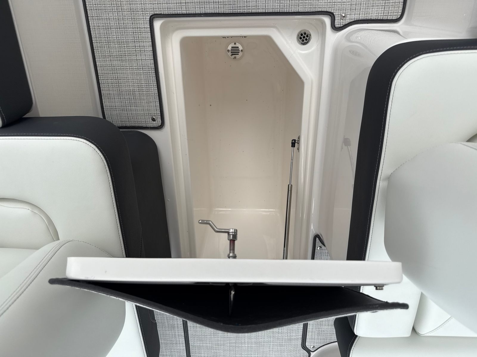 The Regal LS6 is designed with practicality in mind, making every aspect of ownership more enjoyable. The travel storage cover helps protect your boat from the elements, while the dual battery switch system offers peace of mind by ensuring you always have backup power when you need it. The docking lights simplify nighttime arrivals and departures, enhancing safety and convenience. The pump-out toilet fittings make it easy to extend your time on the water without sacrificing comfort or cleanliness. With its manageable length and advanced forward drive system, the LS6 is easy to dock and maneuver, even for those new to boating.