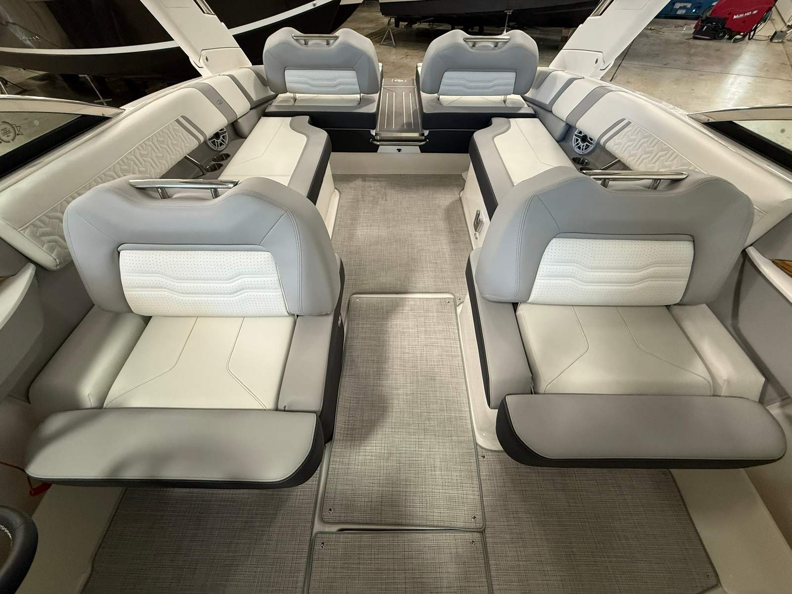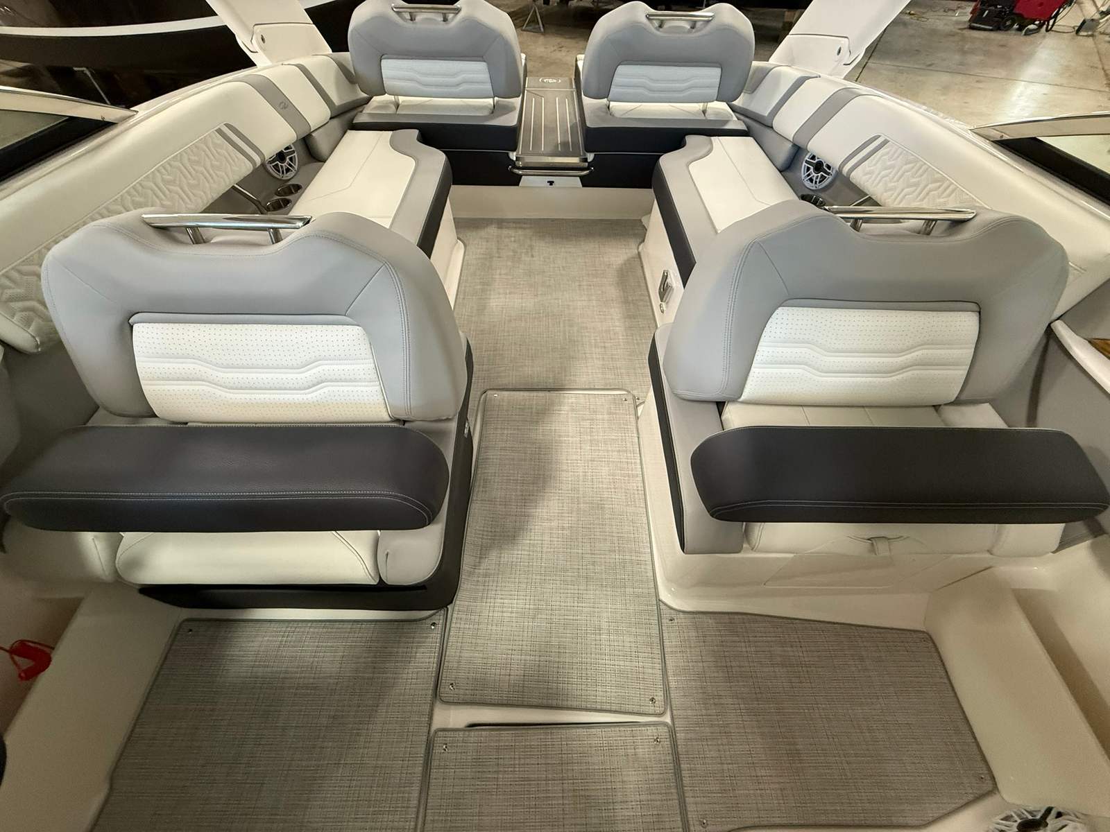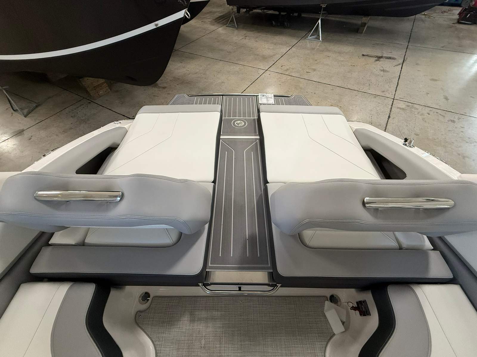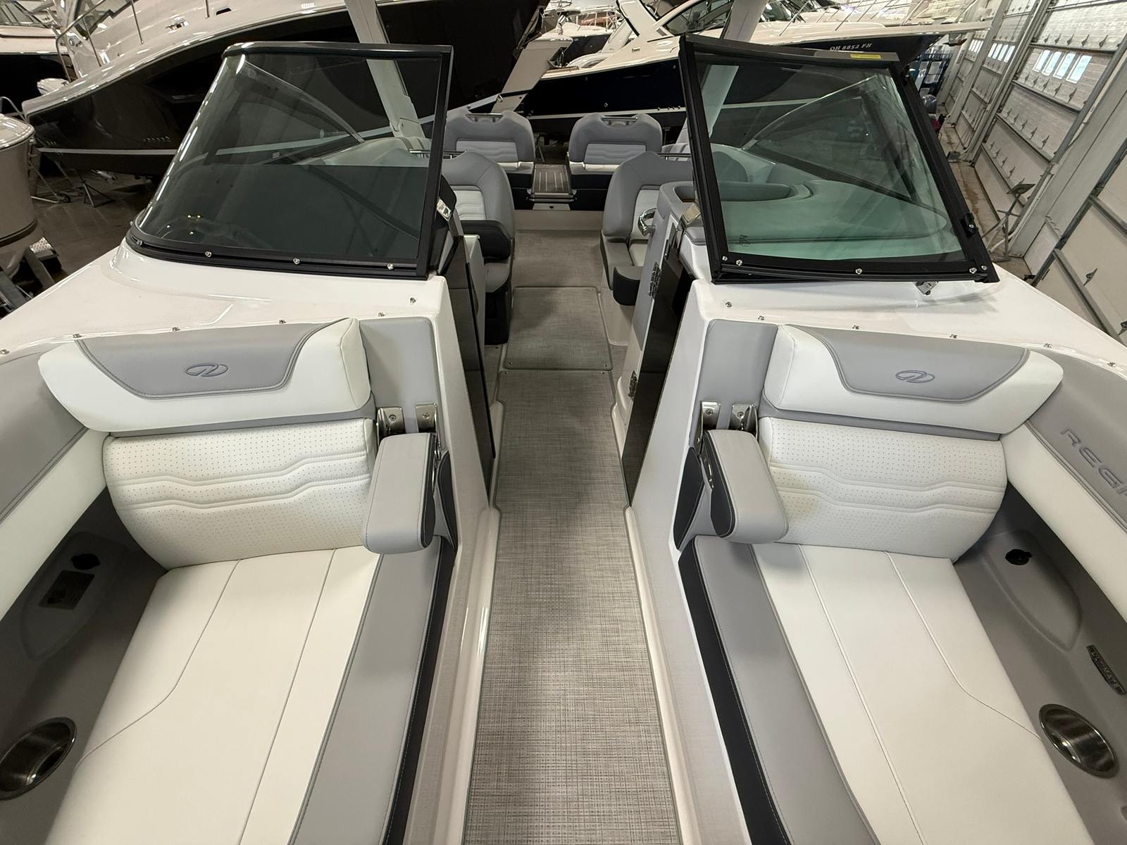 The Regal LS9 Ultimate is meticulously crafted with attention to detail, offering a range of features that enhance both aesthetics and functionality. The exterior showcases a harmonious blend of Steel Grey, Black, and Lunar Grey, with each color zone thoughtfully placed to create a visually stunning profile. The Pure White accents in Zone 1 provide a crisp contrast, while the Graphite and Lunar Grey tones in subsequent zones add depth and elegance.Inside, the bowrider layout is designed for maximum comfort and versatility. The spacious seating areas invite guests to relax and socialize, while the open bow configuration allows for unobstructed views and easy movement throughout the boat. The high-quality materials and finishes reflect Regal’s commitment to luxury and durability, ensuring that every outing is both comfortable and stylish.