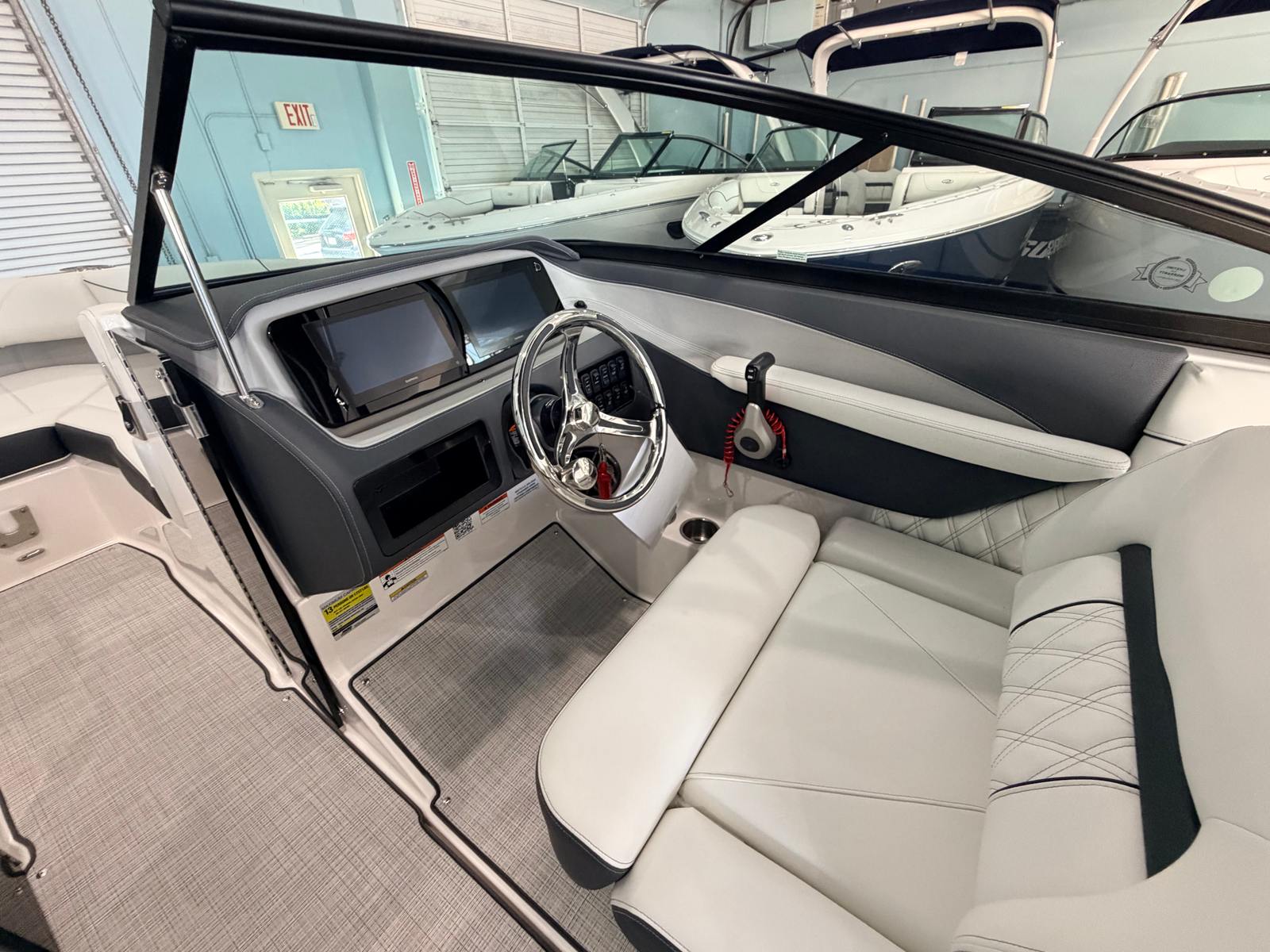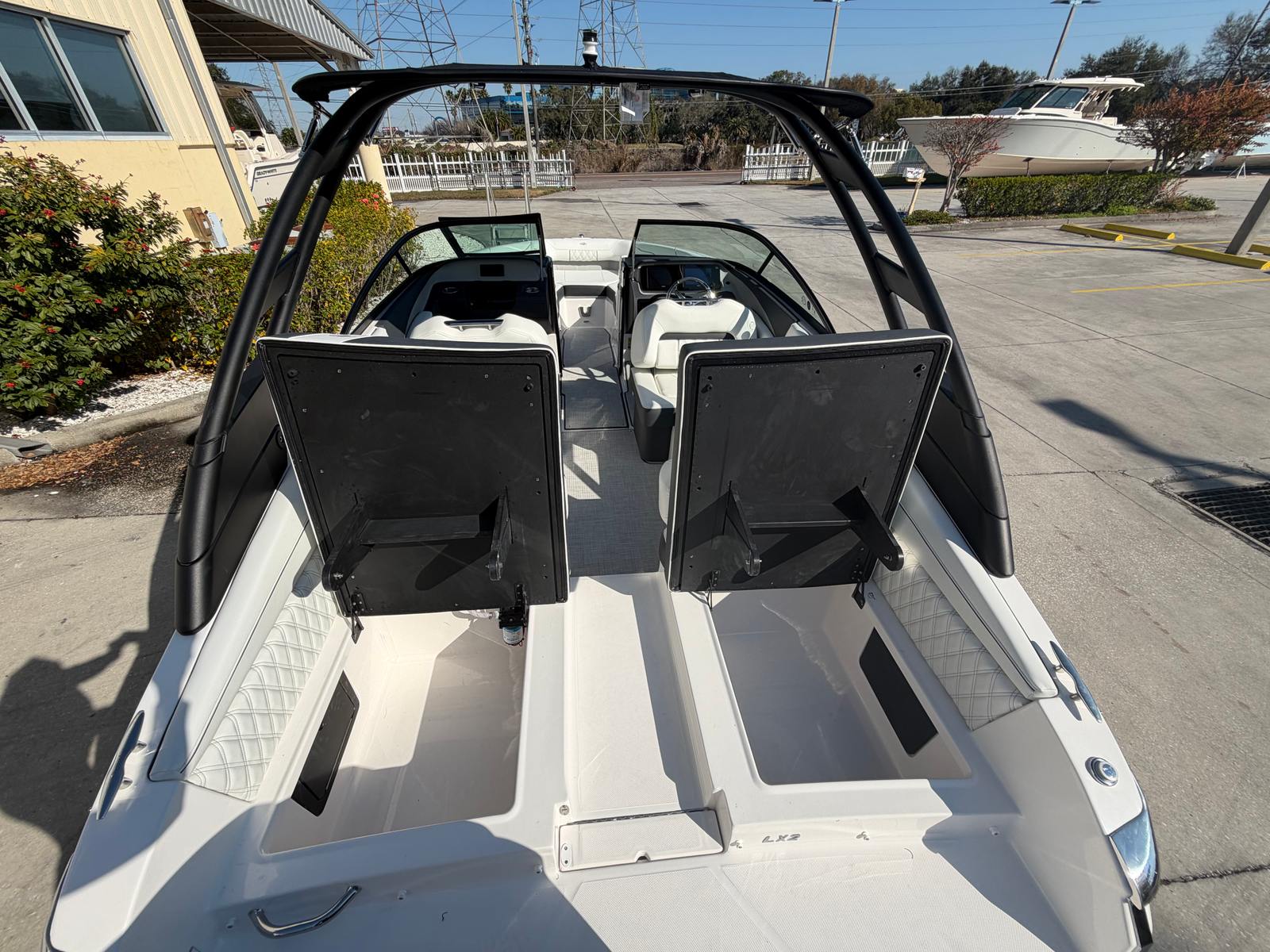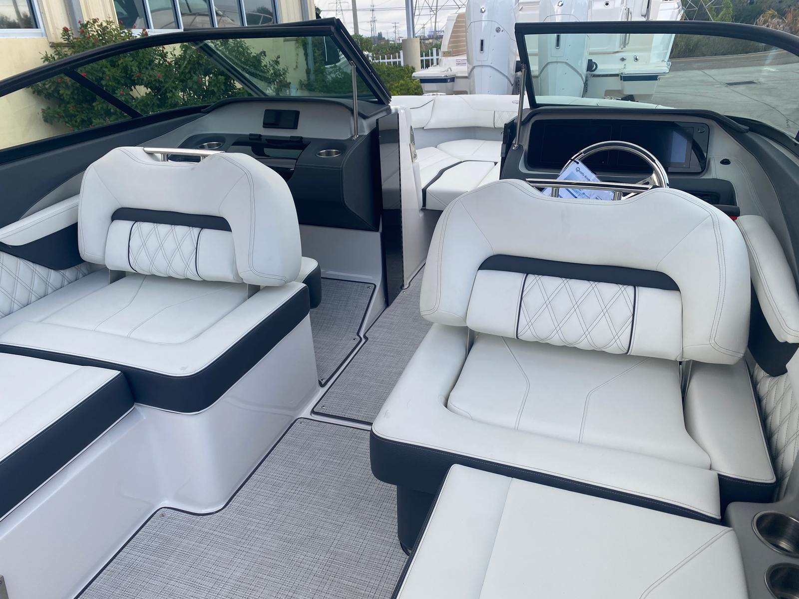 The Regal LX2 Bowrider is loaded with features designed to enhance your boating experience. The Bow & Cockpit Covers provide essential protection from the elements, keeping your boat in pristine condition when not in use. Step onto the Cockpit Seagrass Mat and enjoy the comfort and style it brings to the interior, creating a welcoming space for relaxation and socializing. The Dual Battery Switch with Tray and Cables ensures reliable power management, giving you peace of mind during extended outings. The included Battery Charger keeps your systems ready to go, so you can focus on making memories instead of worrying about maintenance.The LX2’s thoughtful design extends to every detail, from the spacious seating arrangements to the intuitive layout that maximizes both comfort and functionality. The Titanium accents and premium materials elevate the onboard atmosphere, making every journey feel like a special occasion.