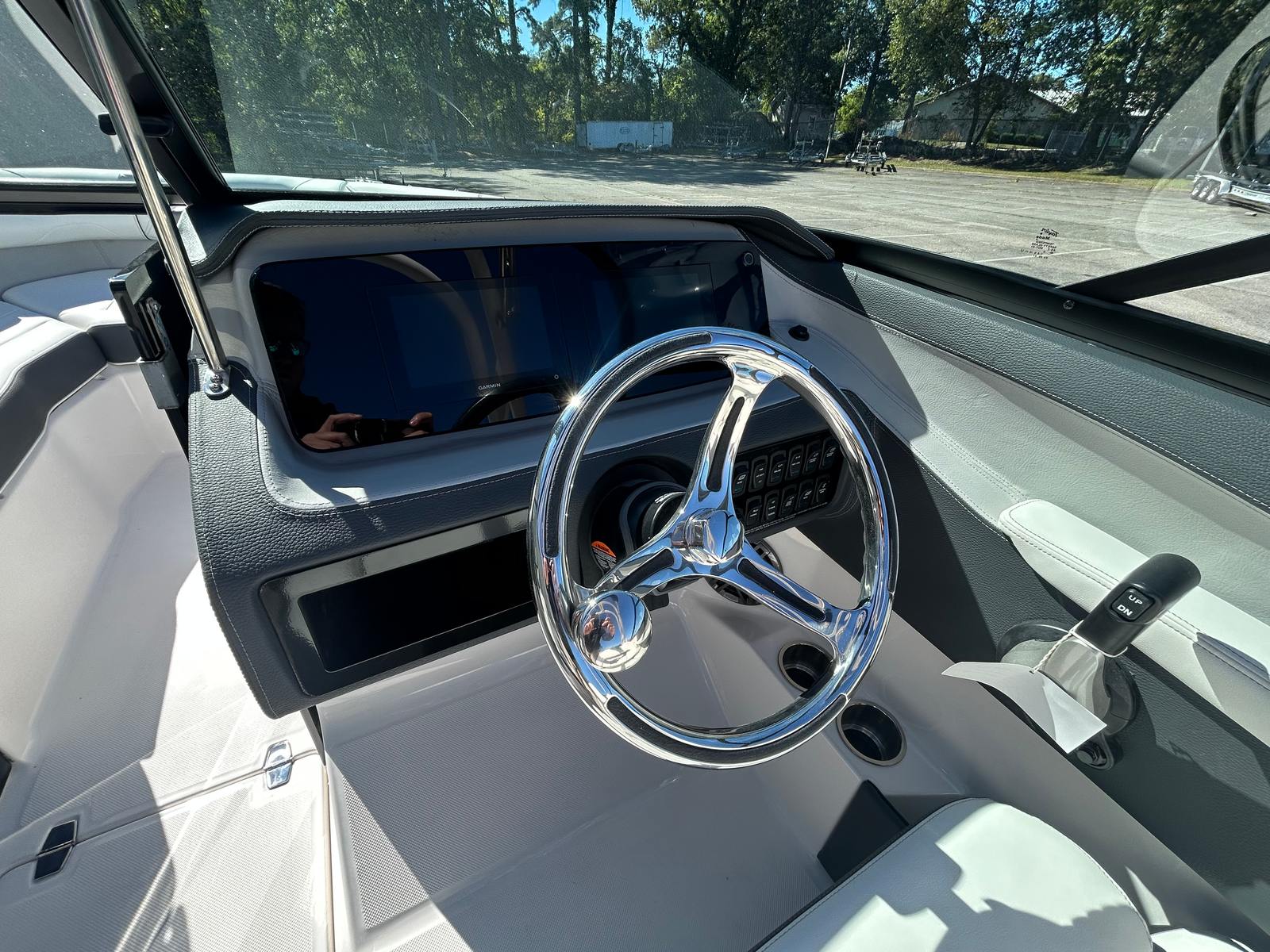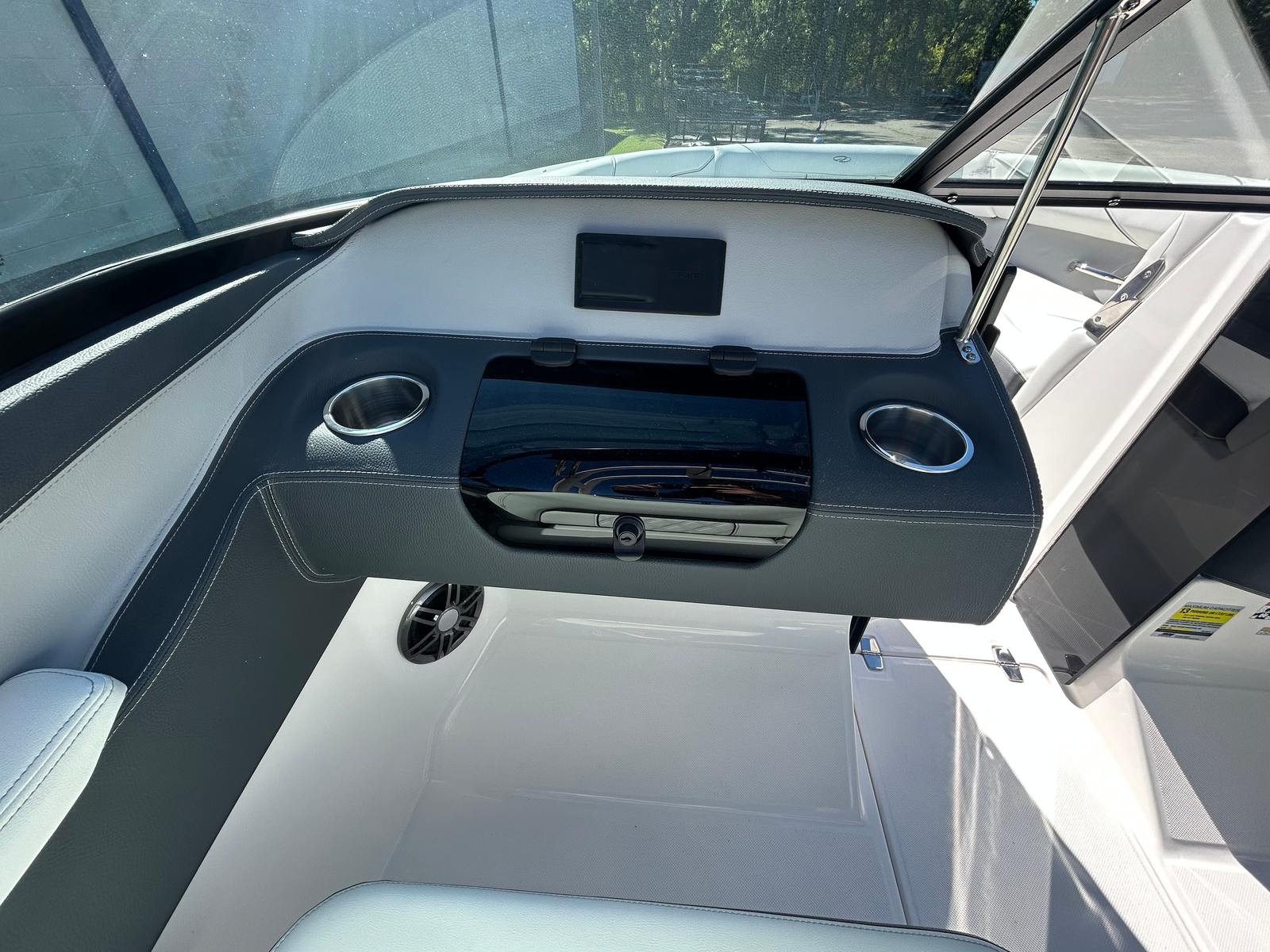 The Regal LX2 Bowrider is packed with features designed to enhance your boating experience. The Mediterranean Blue bow and cockpit covers provide protection from the elements, keeping your boat in pristine condition while adding a stylish touch. The dual battery switch with tray and cables ensures reliable power management, giving you peace of mind during extended outings. The stainless steel upgrade package adds durability and a polished look to key components, while the bow walk-thru doors offer convenient access and improved safety for passengers moving between the bow and cockpit areas.The hull’s Mediterranean Blue color, paired with the Tahiti Beach White bottom, not only looks stunning but also reflects Regal’s commitment to quality and attention to detail. The Titanium accents and Mediterranean Blue canvas further enhance the boat’s aesthetic appeal, creating a cohesive and luxurious atmosphere onboard.