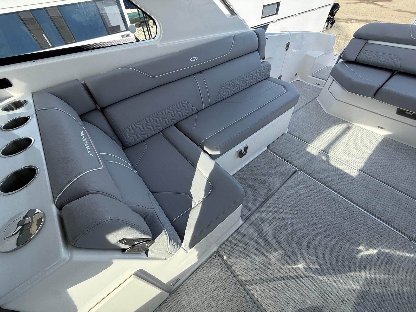 Owning the Regal LX36 bowrider means embracing a lifestyle of fun, relaxation, and social connection. The spacious layout and luxurious seating make it easy to host family outings, celebrate special occasions, or simply unwind with friends. The advanced audio and entertainment systems transform every trip into a memorable event, while the premium upholstery and flooring ensure comfort and style at every turn. With features like the PowerShade and cockpit refrigerator, you can enjoy long days on the water without sacrificing convenience or comfort.The LX36’s impressive horsepower and dual engines mean you’ll never be short on excitement, whether you’re zipping across the waves or enjoying a leisurely cruise. The boat’s thoughtful design encourages socializing, with plenty of seating and open spaces for conversation, dining, or sunbathing. The RGBW lighting adds a vibrant touch to evening gatherings, creating an inviting ambiance that’s perfect for entertaining.