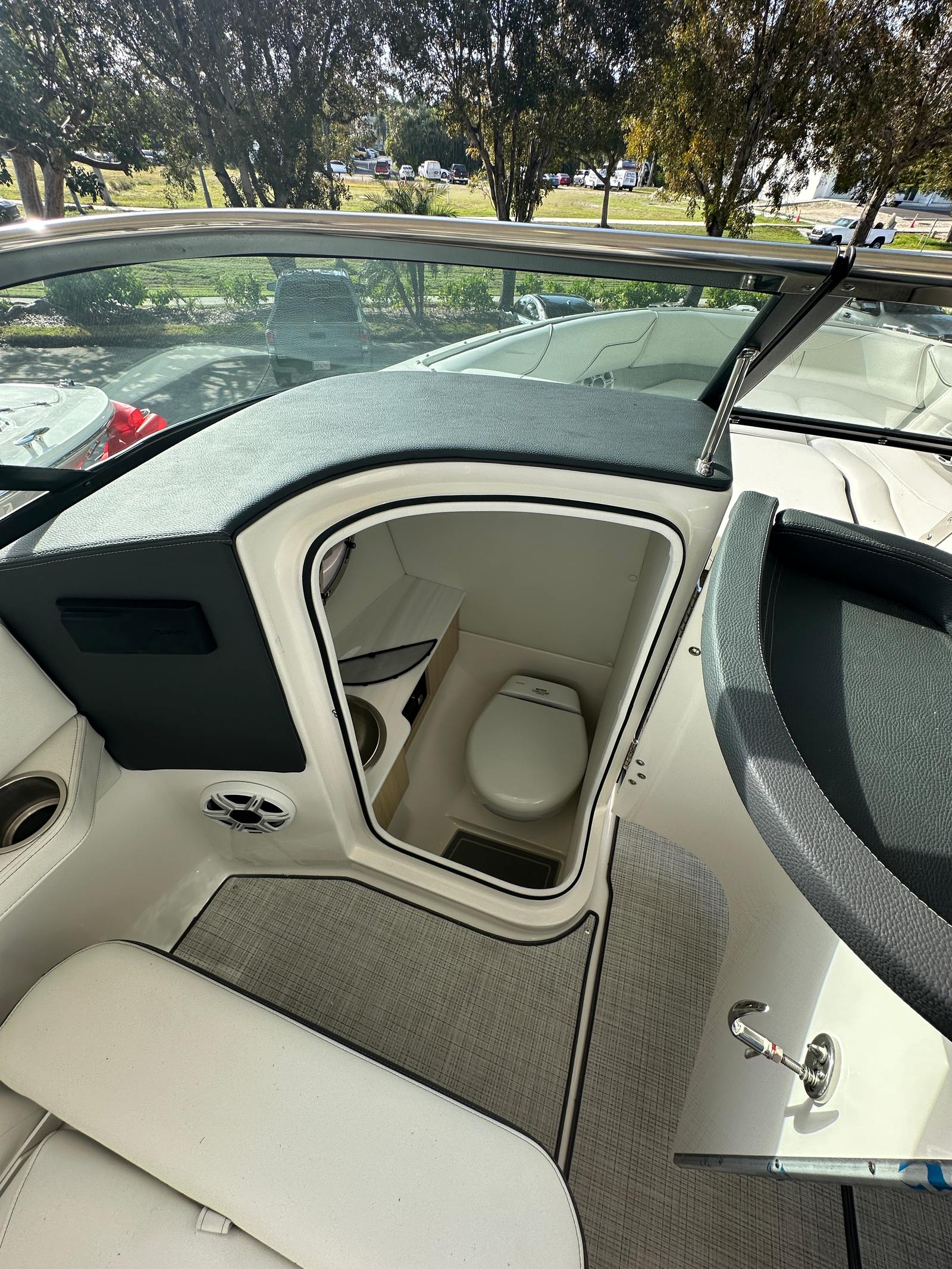 The Regal LX4 Bowrider is packed with premium features designed to enhance comfort, convenience, and fun. The Bow & Cockpit Covers provide essential protection from the elements, keeping your boat in pristine condition. The White Stamoid Upgrade Bimini Top and Mediterranean Blue canvas offer stylish shade options, perfect for sunny days on the water. The Cockpit Seagrass Mat adds a layer of comfort and sophistication underfoot, while the Dual Battery Switch with tray and cables ensures reliable power management for all your onboard electronics. Every detail, from the vibrant hull colors to the thoughtfully designed interior, reflects Regal’s dedication to superior craftsmanship and user-friendly design.