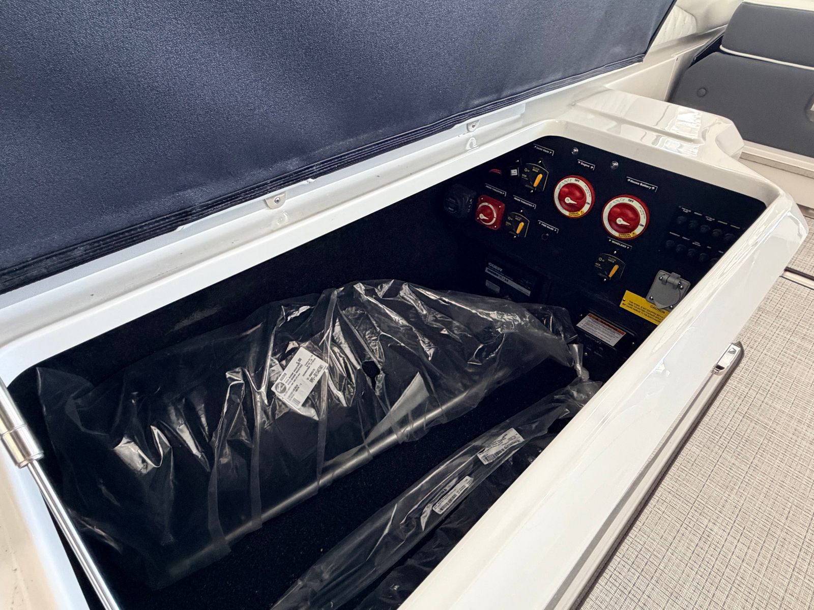 The 2026 Regal LX6 comes equipped with a range of special features designed to enhance your boating experience. The striking Tahiti Beach White hull and bottom, paired with a black bootstripe, create a visually stunning exterior that is sure to turn heads. The Titanium interior offers a modern, upscale feel, providing both comfort and durability for all your adventures.For added convenience and protection, the LX6 includes bow and cockpit covers, ensuring your boat stays clean and protected from the elements when not in use. The manual bow and cockpit sunshade system, finished in black canvas, allows you to create shaded areas for relaxation, making hot summer days more enjoyable. The cockpit seagrass mat adds a touch of luxury underfoot, while also being easy to clean and maintain.Practical features such as the dual battery switch with tray and cables, along with a battery charger, ensure reliable power management and peace of mind during every outing. These thoughtful additions make the LX6 not only stylish but also highly functional for boaters who value convenience and reliability.