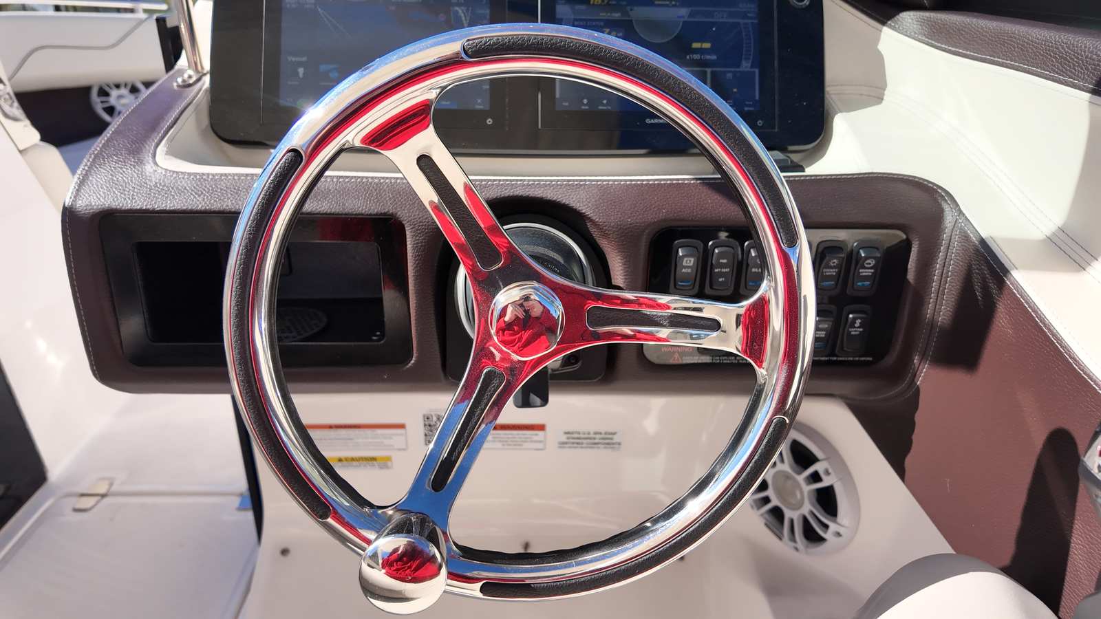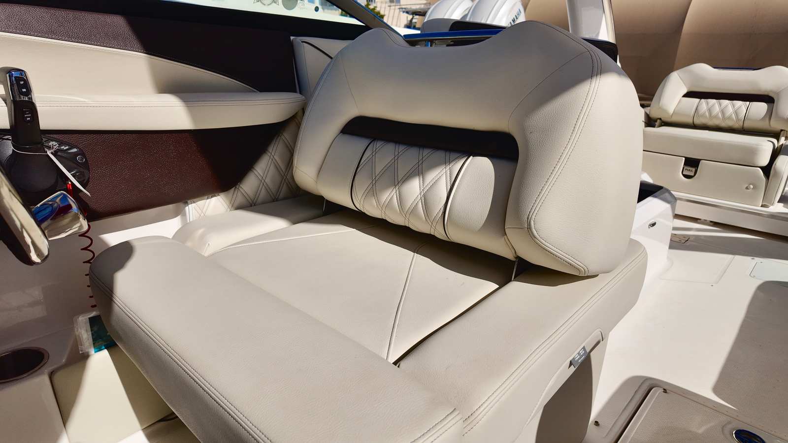 At the heart of the Regal LX6 is a single Yamaha F350XSA2 engine, delivering an impressive 350 horsepower. This powerhouse ensures smooth acceleration, responsive handling, and reliable performance whether you’re cruising, towing water toys, or exploring new destinations. The engine’s advanced engineering provides optimal fuel efficiency, making every trip enjoyable and cost-effective. With the addition of trim tabs, you can easily adjust the boat’s attitude for a smoother ride, improved stability, and enhanced control in varying water conditions.