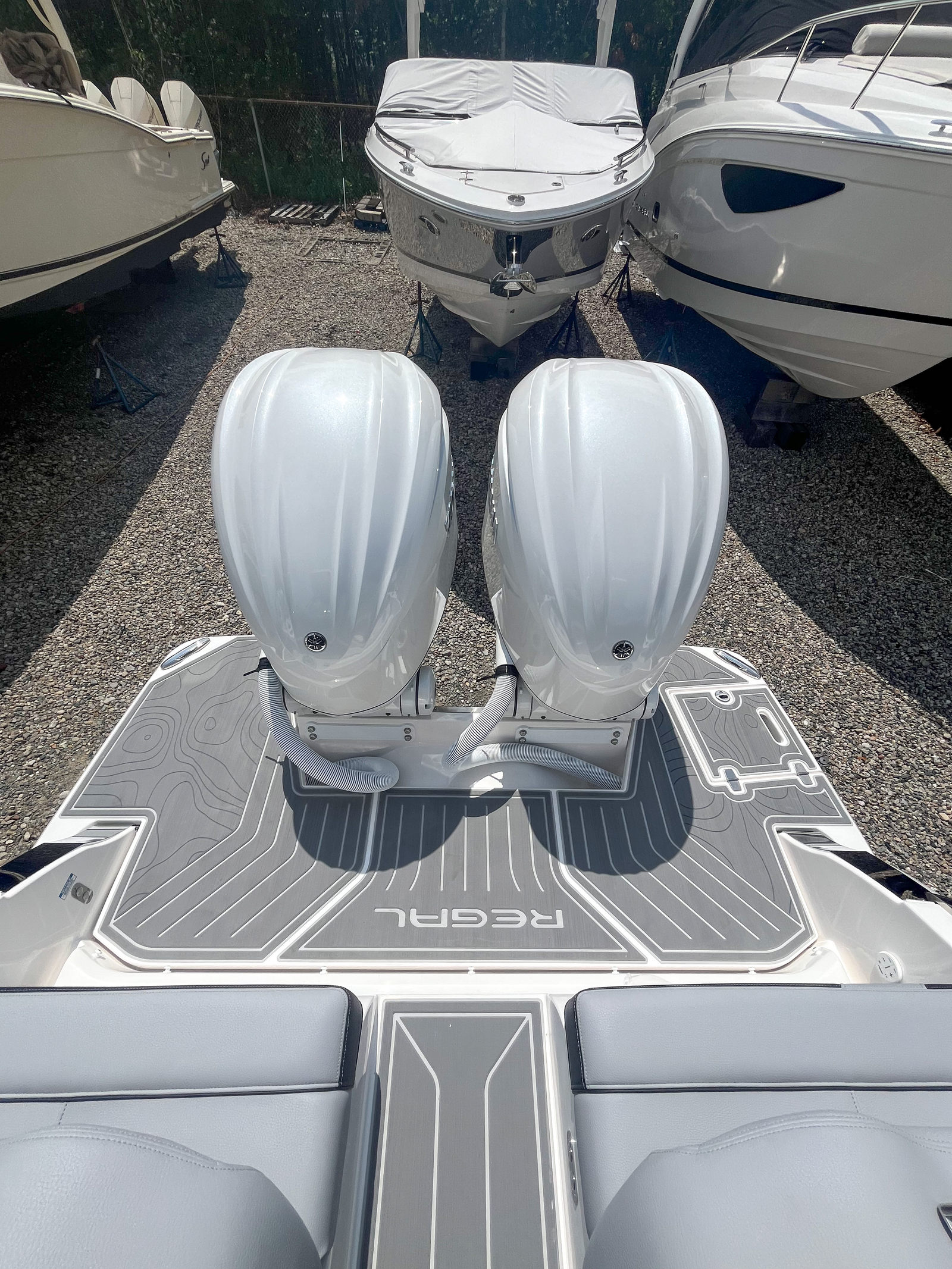 Powering the Regal LX9 are two high-performance engines, delivering a combined 500 horsepower for exhilarating speed and smooth handling. This twin-engine setup ensures rapid acceleration, agile maneuverability, and the confidence to tackle a variety of water conditions. Whether you’re cruising along the coastline, enjoying watersports, or exploring hidden coves, the LX9’s powerful propulsion system provides a thrilling ride every time. The advanced engineering behind Regal’s hull design further enhances stability and efficiency, making this Bowrider boat for sale a leader in its class.