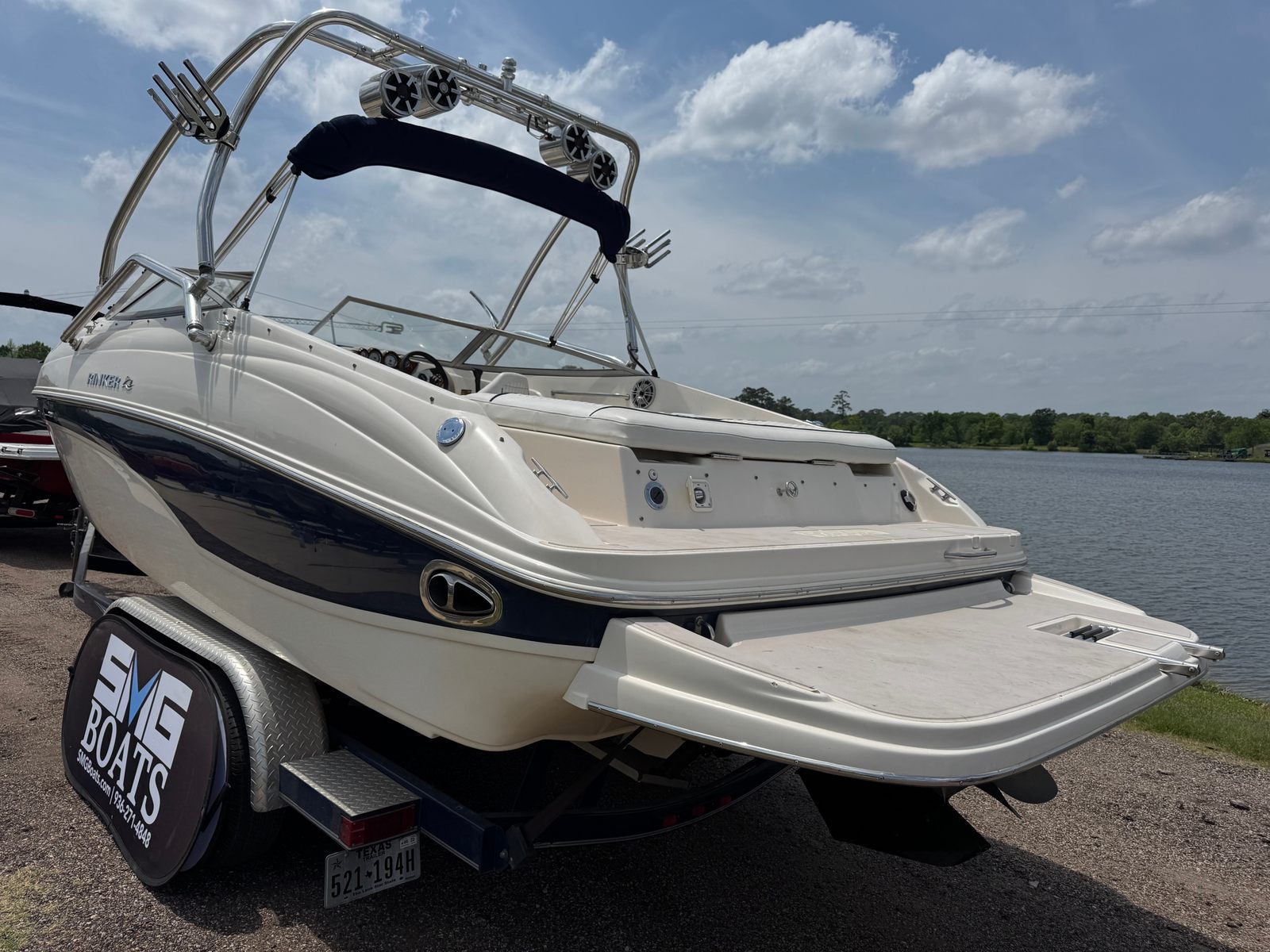 The 2003 Rinker 232 Captiva is a 23-foot bowrider designed to deliver unforgettable moments on lakes, rivers, or coastal waters. This used Rinker boat for sale is renowned for its robust construction, sleek lines, and inviting layout, making it an ideal vessel for both seasoned boaters and newcomers alike. With its generous length, the 232 Captiva offers ample space for passengers to stretch out, socialize, and soak up the sun, all while enjoying the security and stability that Rinker boats are known for.