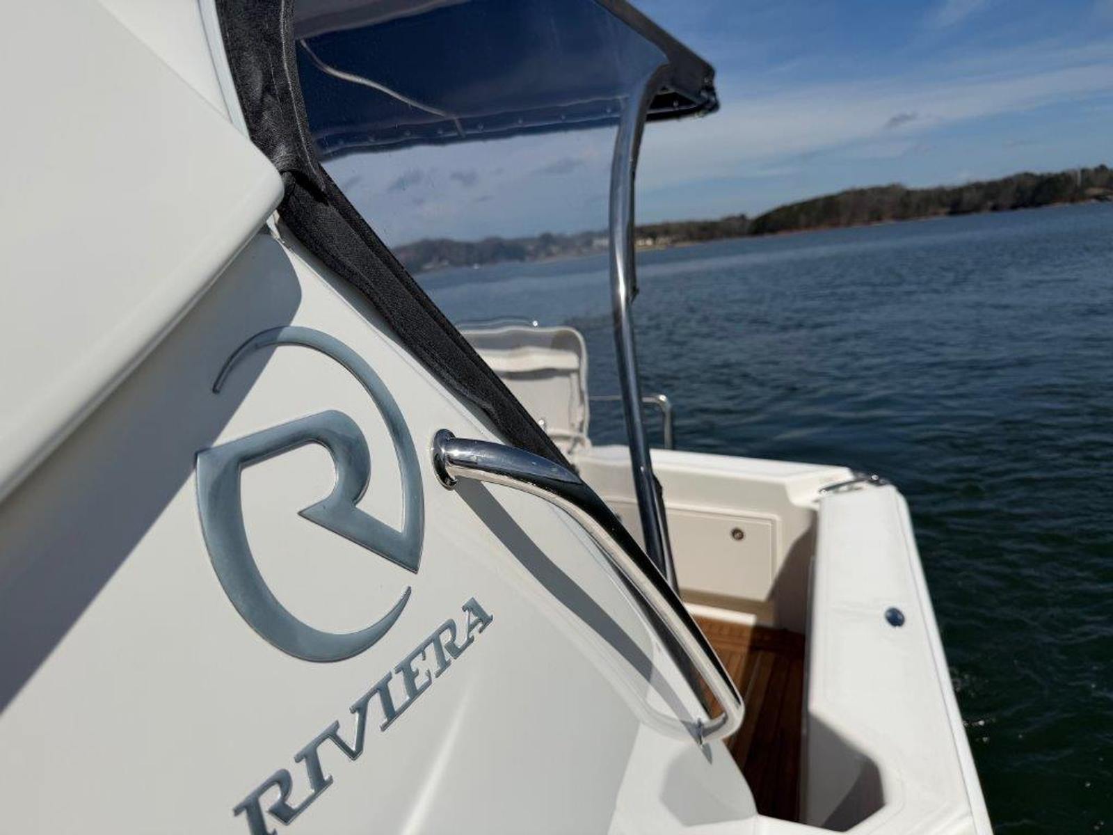 Built with Riviera’s advanced CAD engineering, she features a solid GRP hull, structural core materials, and precision-molded components bonded together for strength and durability. Her hull design includes straight-run aft chine strakes for enhanced speed and control, a moderate V forward entry, and a 14.5-degree deadrise at the transom—keeping the ride smooth and composed in varying conditions.