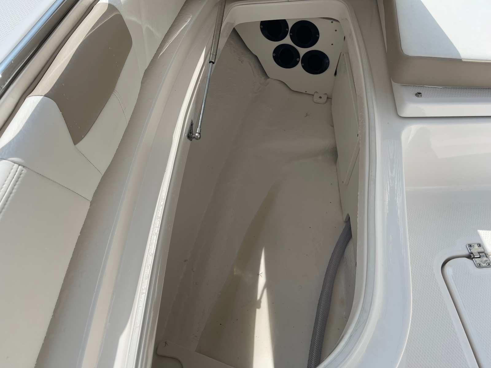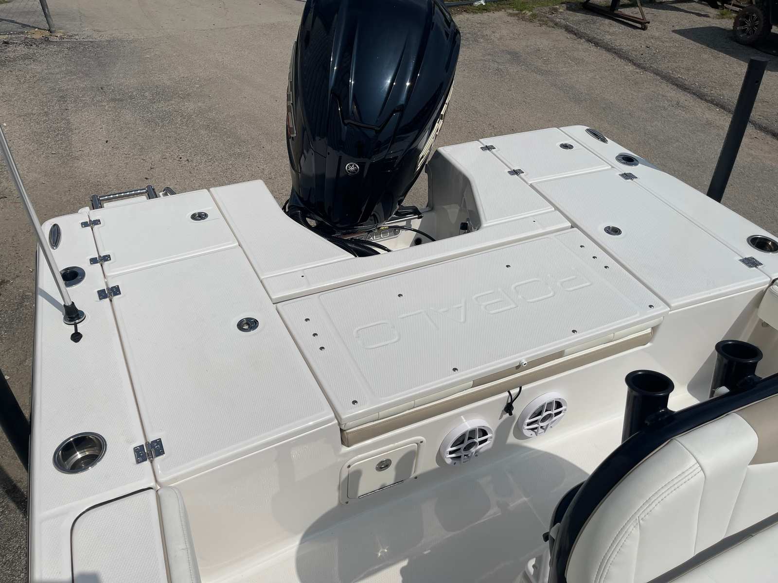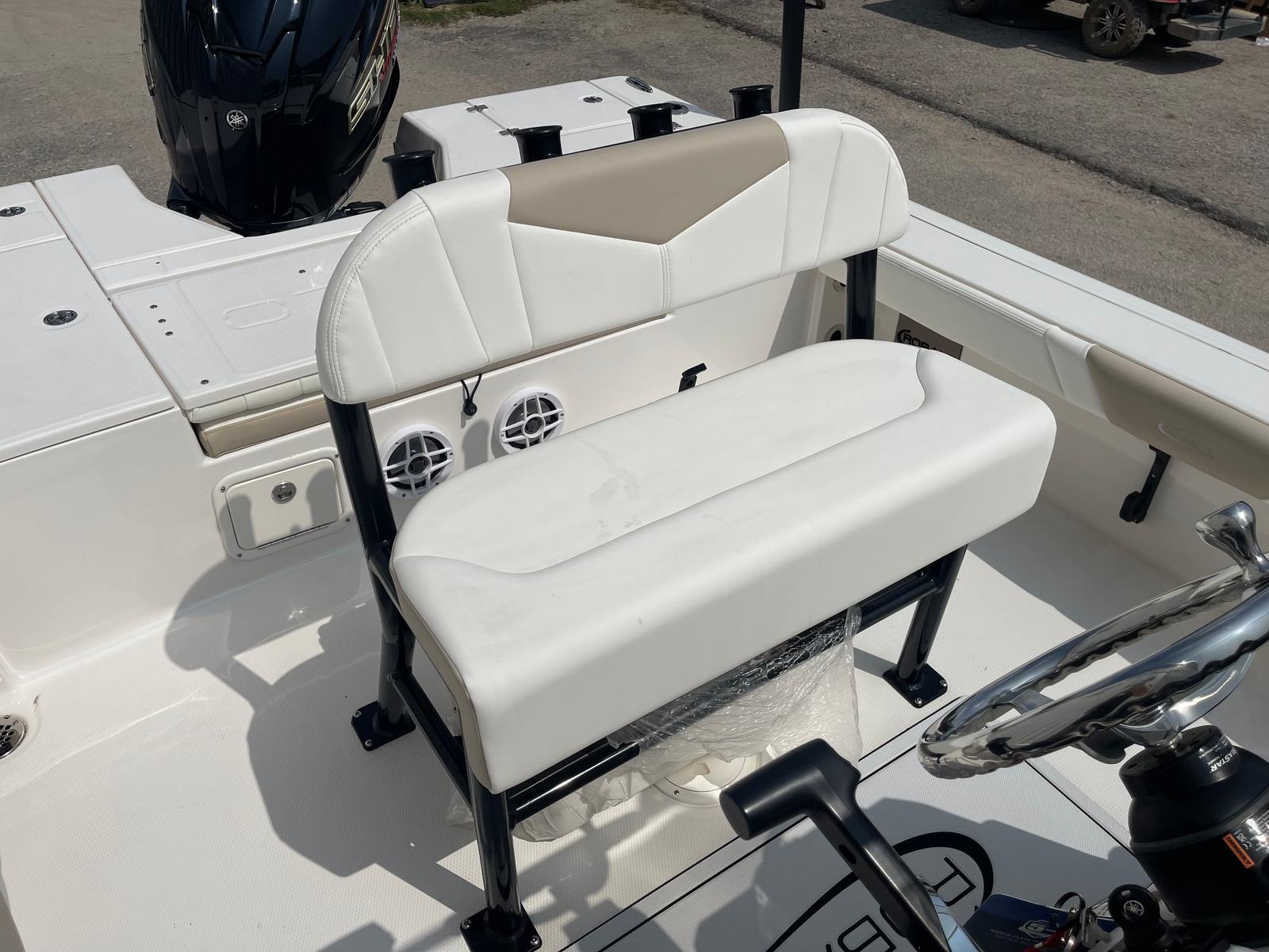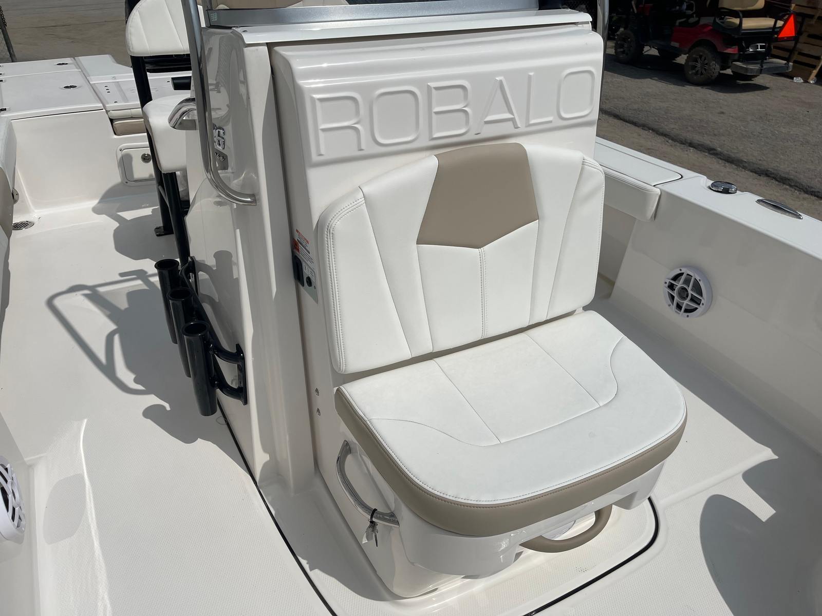 The Robalo 226 Cayman STD is packed with special features that enhance its functionality and aesthetic appeal. Its striking white hull not only gives the boat a modern and clean look but also reflects sunlight, keeping the interior cooler during those sunny days on the water. The cockpit interior, finished in a stylish sand color, offers a comfortable and inviting space for relaxation and socializing. The black canvas color adds a touch of sophistication, complementing the overall design of the bay boat.