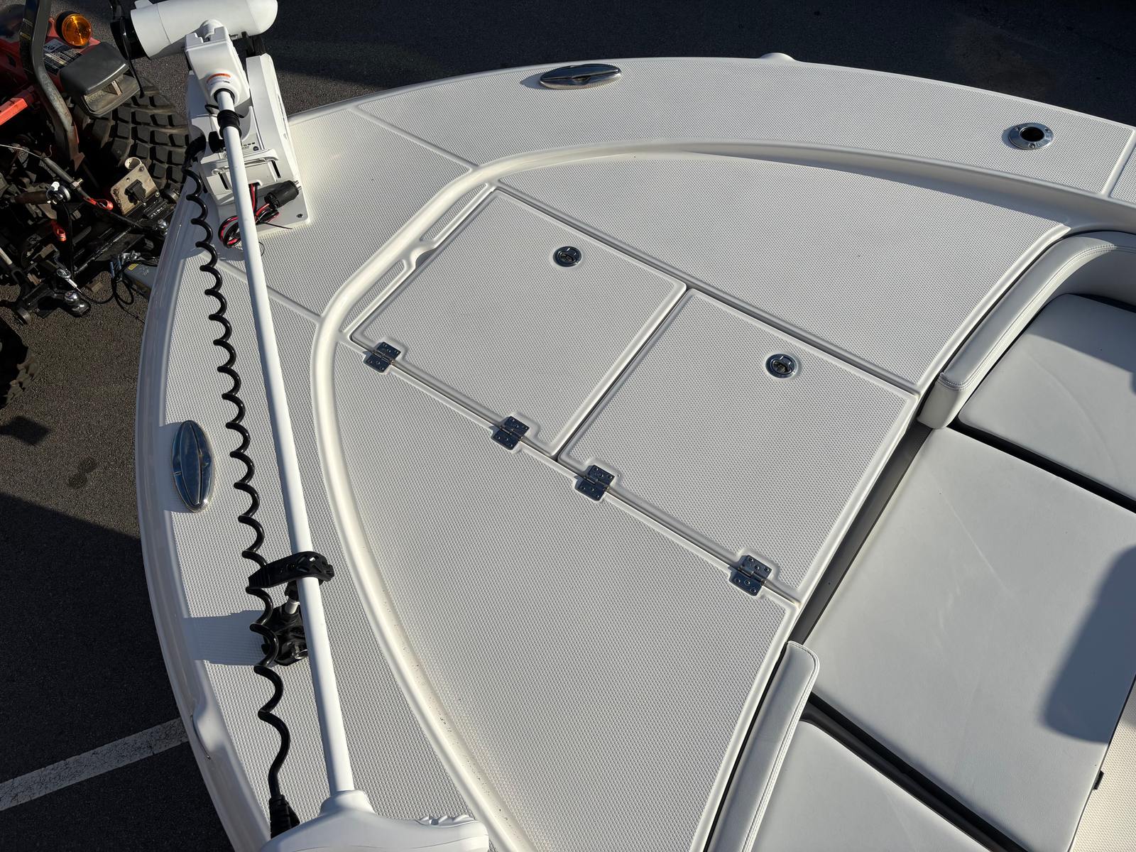 Practicality is at the core of the Robalo 246 Cayman’s design. The bay boat’s manageable 24.5-foot length makes it easy to trailer, launch, and dock, even for those new to boating. The efficient layout provides ample storage for gear, tackle, and personal items, keeping the deck clutter-free and organized. The advanced trolling motor and trim tabs enhance maneuverability and control, allowing you to navigate shallow waters, tight channels, or open bays with ease.The dual color LED underwater lights not only add a touch of style but also improve visibility and safety during low-light conditions. The Seadek helm mat ensures a comfortable and secure footing, even during long days on the water. With its durable construction and low-maintenance materials, the 246 Cayman is built to withstand the rigors of saltwater environments, ensuring years of reliable enjoyment.