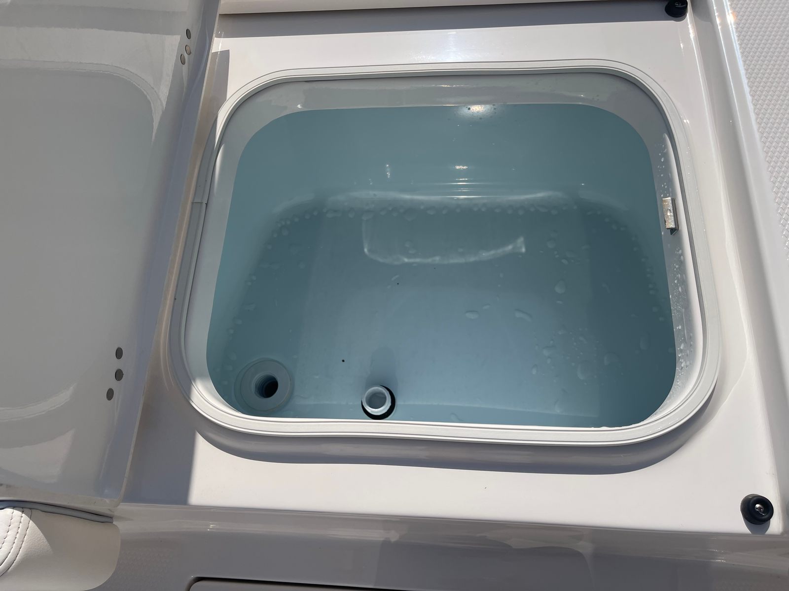 The Robalo 246 Cayman is packed with premium features that enhance both functionality and comfort. The solid hull gelcoat in Ice Blue not only adds a touch of elegance but also provides durability and protection against the elements. The cockpit interior, finished in Harbor Ice Blue, creates a cool and inviting atmosphere for all your guests.A standard hard top, powder coated in white, offers shade and protection from the sun, making long days on the water more enjoyable. The Simrad NSS12 EVO3S multifunction display puts navigation and fish-finding technology at your fingertips, ensuring you stay on course and in control. For those who appreciate high-quality sound, the JL Audio Sound System Upgrade delivers crystal-clear music, setting the perfect mood for any outing.Trim tabs with indicators allow for easy adjustment of the boat's attitude, improving stability and ride comfort in varying conditions. Dual color LED underwater lights (two on each side) add a dramatic flair for evening cruises and make nighttime activities safer and more enjoyable. The Seadek helm mat provides cushioned support for the captain, reducing fatigue during long days at the helm. For added convenience, a porta pottie is included, ensuring comfort during extended trips.