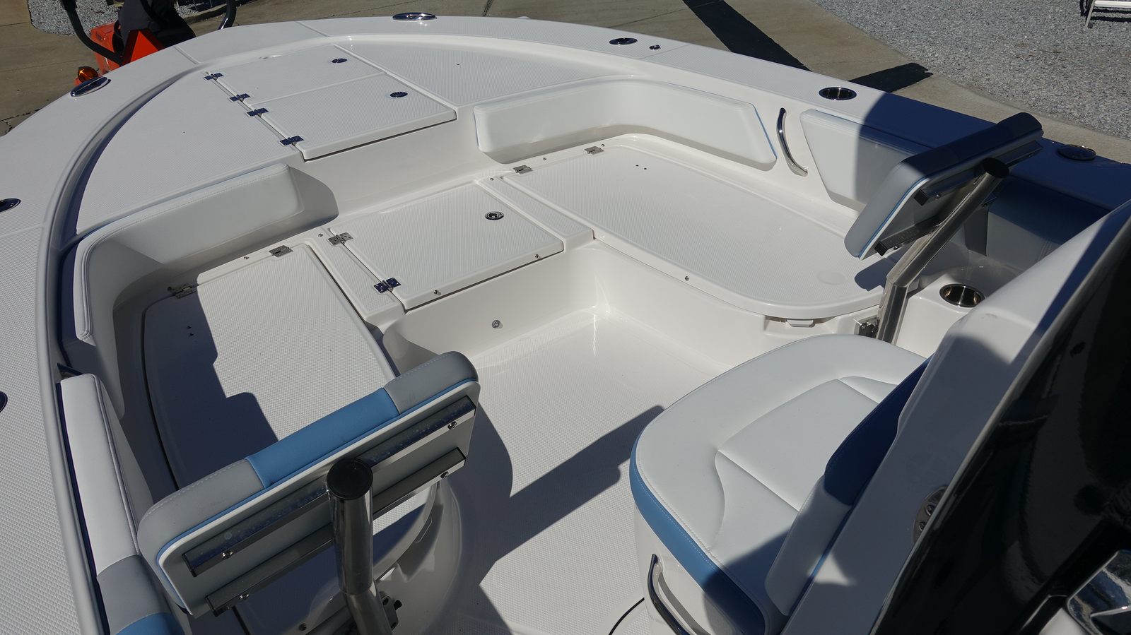 Powering the Robalo 246 Cayman is a single Yamaha F350XSA2 engine, finished in white and equipped with Digital Electric Steering. Boasting an impressive 350 horsepower, this engine ensures smooth, responsive handling and exhilarating acceleration. Whether you’re navigating shallow bays or heading out for a day of offshore fishing, the Yamaha F350XSA2 delivers reliable performance and efficiency. The advanced steering system allows for precise control, making docking and maneuvering effortless, even in challenging conditions.