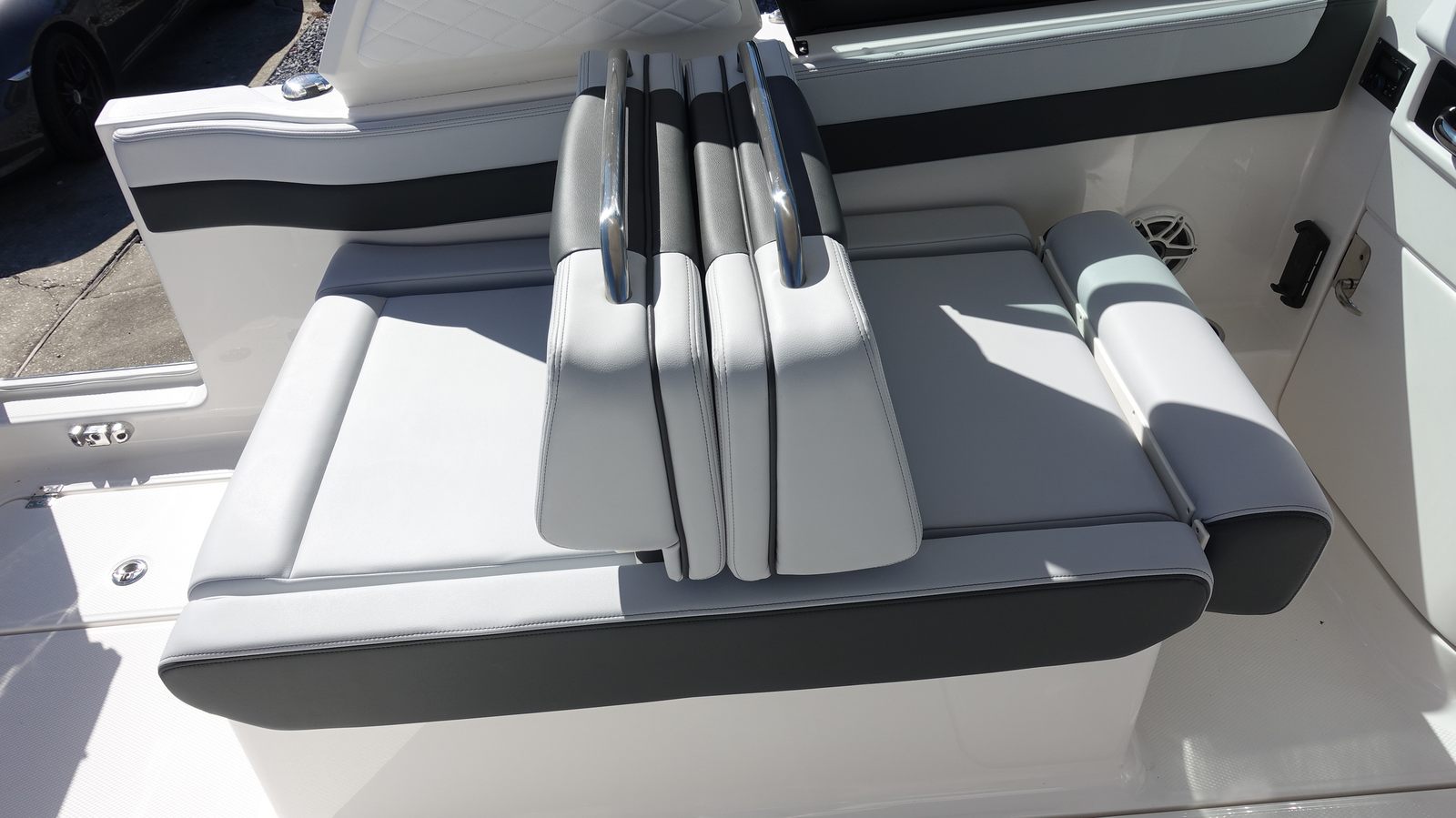 Power and precision define the performance of the Robalo 257 DC. Equipped with twin Yamaha F150XSA2 outboard engines, each delivering 150 horsepower, this boat boasts a combined 300 horsepower for exhilarating speed and responsive handling. The white engines are paired with electro-hydraulic steering, ensuring smooth maneuverability and effortless control, even in challenging conditions. Whether you are cruising along the coastline, towing water toys, or heading out for a day of fishing, the Robalo 257 DC offers the power and agility you need for any adventure.