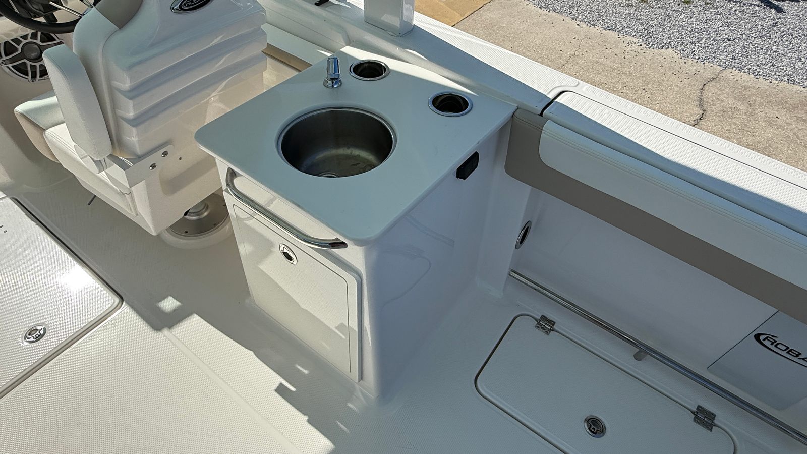 The Robalo 257 DC is designed with practicality in mind, making ownership easy and enjoyable. The aluminum tandem axle trailer simplifies transport and storage, allowing you to take your boat wherever adventure calls. The stowable boarding ladder and windlass package make docking and anchoring hassle-free, so you can spend more time enjoying the water and less time managing logistics.Fuel efficiency is enhanced by the twin Yamaha engines, helping you save on operating costs while maximizing your time on the water. The spacious deck and smart storage solutions ensure that all your gear is organized and accessible, whether you’re packing for a day of fishing, water sports, or a relaxing cruise. The durable construction and premium finishes mean your Robalo boat will maintain its beauty and performance for years to come.
