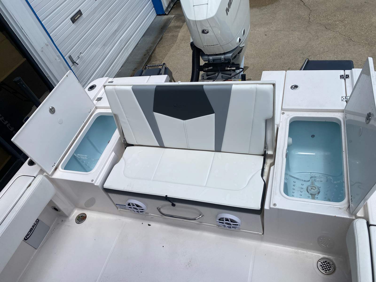 Imagine setting out at sunrise for a day of fishing, with the twin Simrad displays guiding you to the best spots and the spacious deck providing plenty of room for casting and reeling in your catch. Later, transform the bow area with the dedicated table for a picnic lunch with family, surrounded by the stunning views only a bay boat can offer.As the sun sets, switch on the dual color LED underwater lights and enjoy a relaxing cruise with friends, the soft glow creating an inviting atmosphere for conversation and laughter. Whether you are planning a weekend getaway, a family adventure, or a solo escape, the Robalo 266 Cayman adapts to your every need, making every outing memorable.