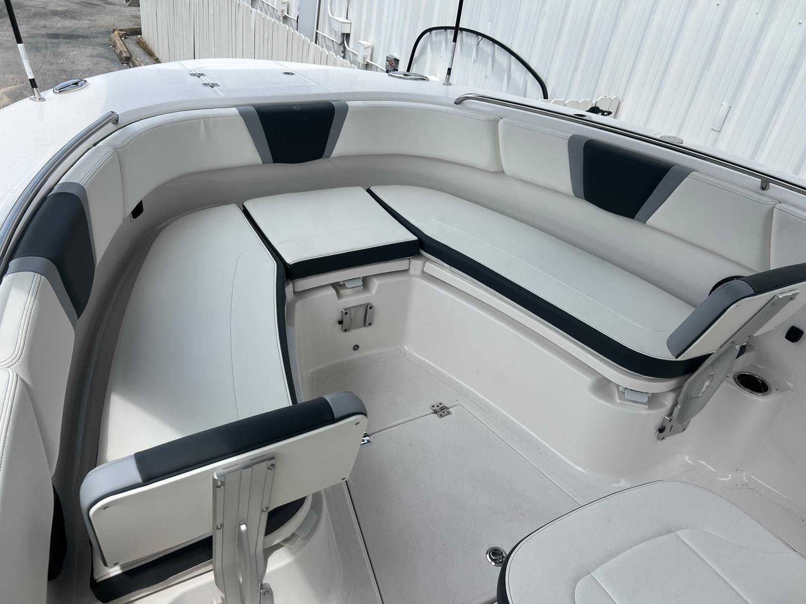 Powering the Robalo 270 CC are twin Yamaha Four Stroke White F250XSB2 250HP 25" engines, delivering a combined 500 horsepower. These engines are equipped with Digital Electric Steering, ensuring precise handling and effortless maneuverability even in challenging conditions. The advanced Yamaha technology provides smooth acceleration, responsive throttle control, and remarkable fuel efficiency, making every journey both thrilling and economical. Whether you are cruising at high speeds or navigating tight marinas, the performance of this Center Console boat is sure to exceed expectations.