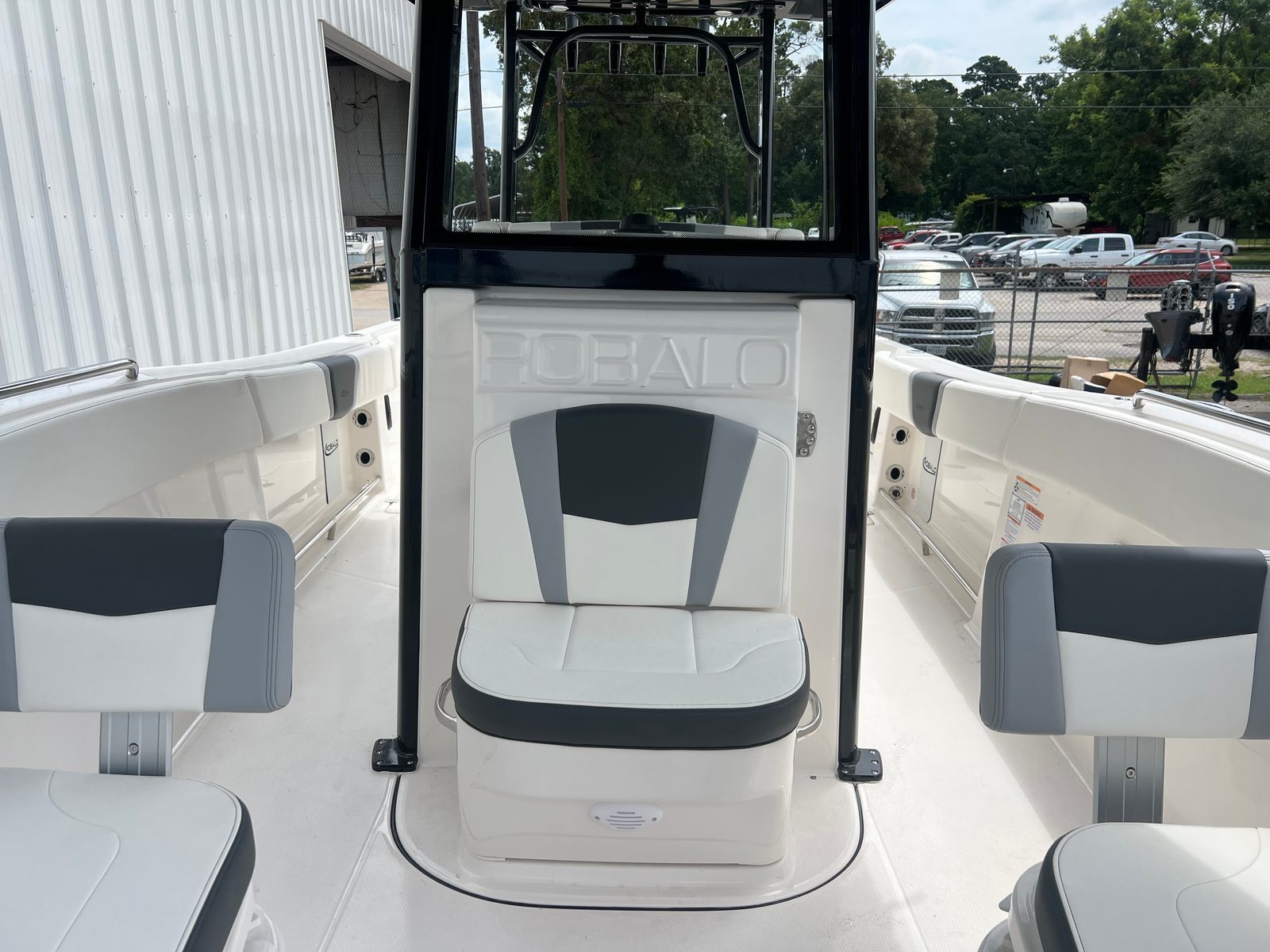 The 2025 Robalo 270 CC is a 27.5-foot Center Console boat that exudes confidence and sophistication from bow to stern. Crafted with a Solid Hull Alloy Gray Gel Coat, this vessel not only looks sleek but also promises durability and strength for years of enjoyment. The Harbor Gray cockpit interior and Deepwater Black hardtop underside gel color create a modern, upscale ambiance, while the black canvas accents add a touch of elegance. As a brand-new model, this Robalo boat for sale is ready to impress with its pristine condition and cutting-edge features.