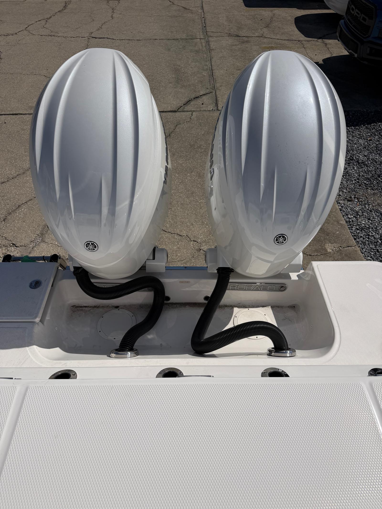 This Robalo boat for sale comes loaded with premium features that set it apart from the competition. The standard full coverage hardtop, powder coated in white, offers excellent protection from the elements while enhancing the boat’s stylish profile. The forward canvas fly in white canvas provides additional shade and comfort for passengers, making long days on the water more enjoyable. If equipped, the canvas color and canvas accessories are finished in sleek black, adding a modern touch to the overall aesthetic.Navigation and communication are made effortless with dual Garmin GPSMap 1243XSV screens, giving you advanced chart plotting, fish finding, and system monitoring capabilities right at your fingertips. The Garmin NMEA 2000 package integrates engine data and audio interface for the Yamaha engines, ensuring you have all the vital information you need for safe and efficient operation. The Garmin VHF radio keeps you connected, providing reliable communication for both safety and convenience.