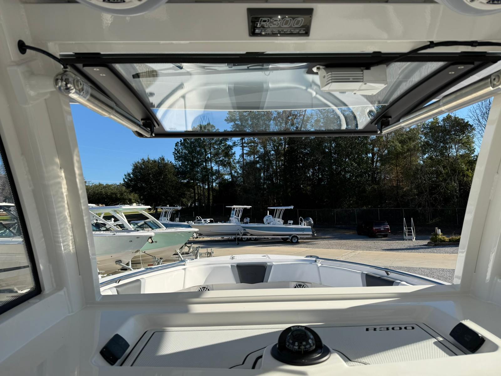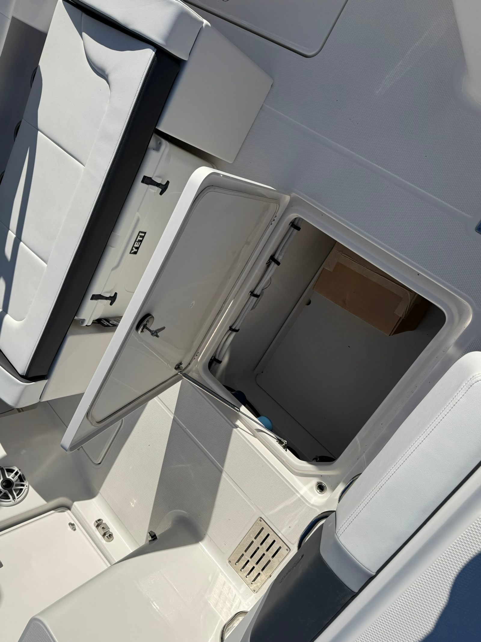 The Robalo 300 CC is packed with premium features designed to elevate your boating experience. The Garmin GPSMap 1643XSV dual screens provide state-of-the-art navigation and fish-finding technology, while the Garmin VHF radio ensures reliable communication on the water. The 12 Volt DC Electric Reel Receptacle is a must-have for serious anglers, offering convenient power for electric reels and other accessories. The Seadek Helm Mat in white adds comfort and style at the helm, while the hardtop underside gel color in Alloy Gray complements the boat’s striking exterior. Every detail, from the cockpit’s Harbor Gray interior to the advanced electronics, is thoughtfully designed to enhance both functionality and aesthetics.