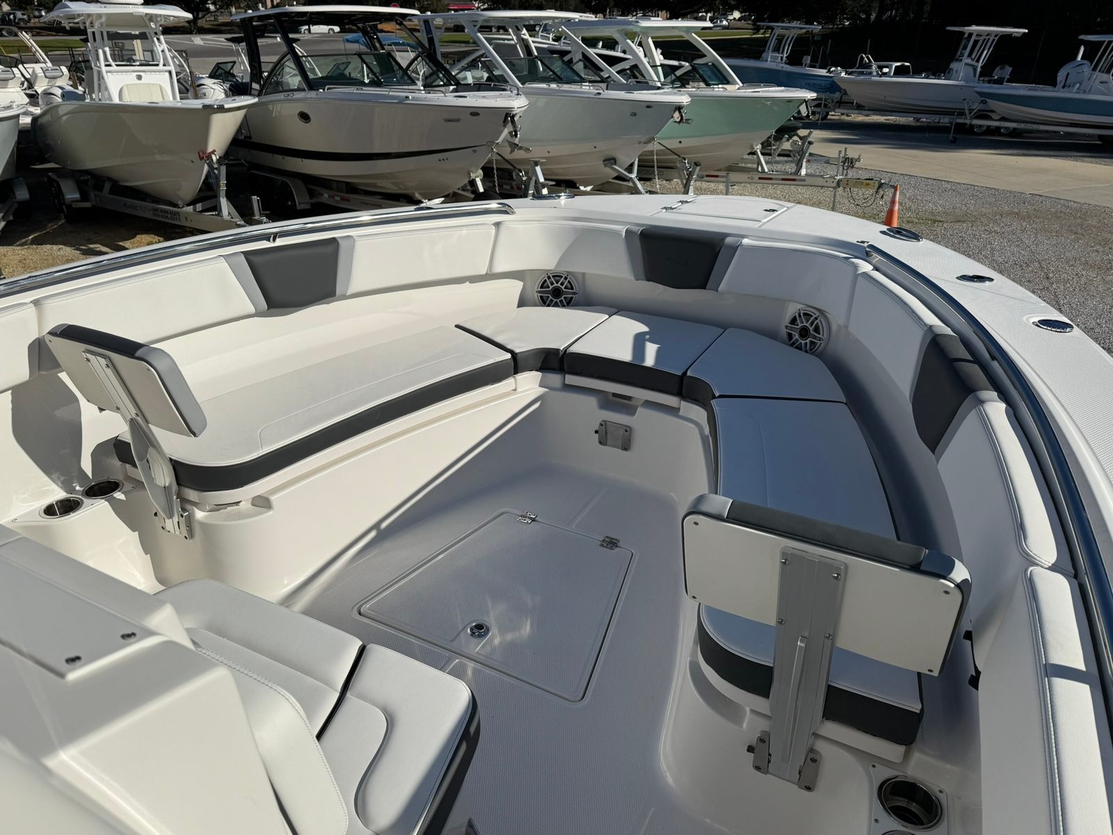 In summary, the 2026 Robalo 300 CC is a top-tier center console boat for sale that combines power, technology, and luxury in one remarkable package. With twin Yamaha F300XSB2 engines, Digital Electric Steering, advanced Garmin electronics, and a host of premium features like the Transducer B175M upgrade, Lenco Pro Trim Tab System, and Seadek Helm Mat, this Robalo boat for sale is ready to elevate your boating adventures. The striking Alloy Gray hull, Harbor Gray cockpit, and thoughtfully designed layout make it as beautiful as it is functional. If you are seeking a new center console boat that offers unmatched performance, comfort, and versatility, the Robalo 300 CC is the ultimate choice. Contact your local dealer today to learn more and schedule a viewing of this exceptional vessel.