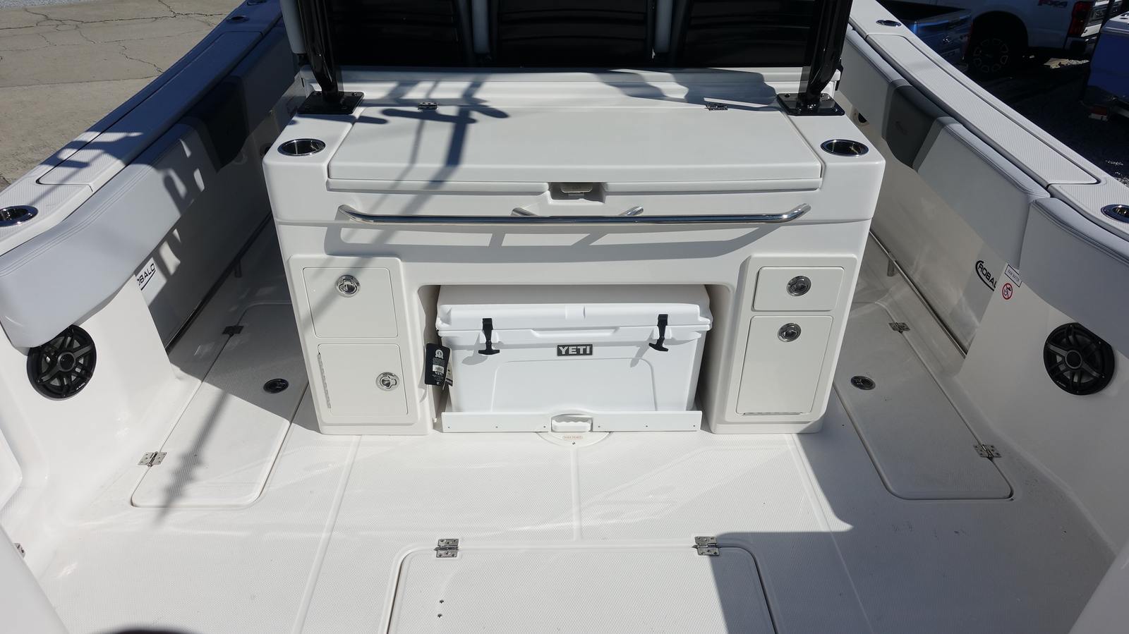 The 2026 Robalo 300 CC is packed with premium features designed to enhance your boating experience. The hardtop underside, finished in Deepwater Black gel color, adds a bold and stylish accent to the boat’s profile. For those who love to fish, the Gemlux Deluxe Collapsible Hybrid 18' Outriggers offer versatility and convenience, making it easy to set up for trolling or store away when not in use. The forward canvas fly in black canvas provides shade and protection from the elements, ensuring comfort during long days on the water.Navigation and communication are made effortless with the dual Garmin GPSMap 1243XSV screens, offering advanced chart plotting, sonar, and connectivity features. The upgraded B175M transducer delivers precise underwater imaging, while the Garmin VHF radio ensures clear and reliable communication for safety and coordination. Every detail of the Robalo 300 CC is thoughtfully designed to provide both functionality and luxury, making it a standout choice among center console boats for sale.