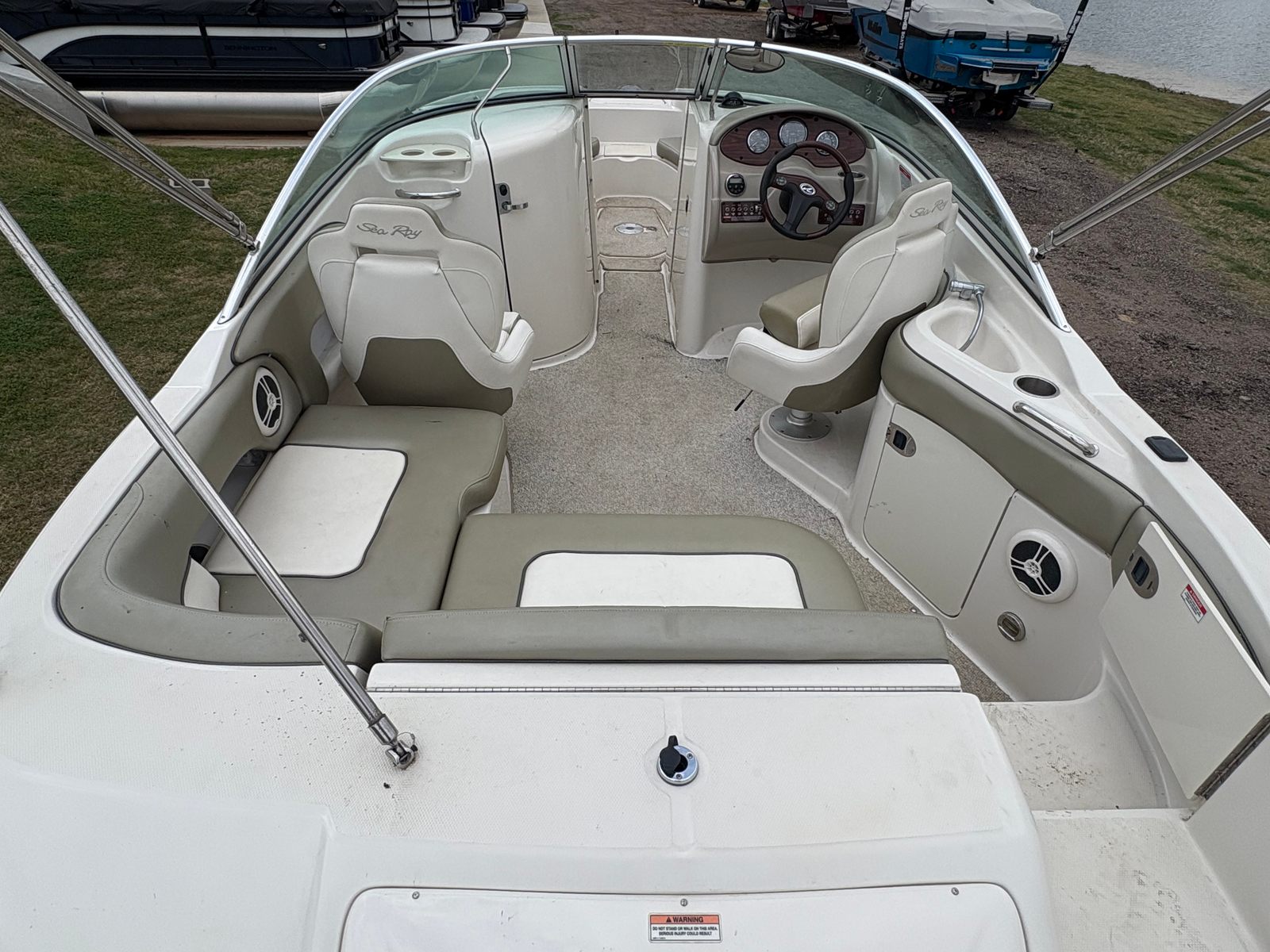 The 2007 Sea Ray 220 SD Bowrider is thoughtfully designed with features that enhance both functionality and enjoyment on the water. Its spacious 22-foot layout provides plenty of seating and room to move, making it perfect for social gatherings and family fun. The bowrider configuration allows for open seating in the front, giving passengers a panoramic view and a comfortable place to relax while cruising. The cockpit is designed for convenience and ease of use, with intuitive controls and a stylish helm that puts everything at your fingertips.This Sea Ray boat for sale is built with quality materials and attention to detail, ensuring durability and a premium feel throughout. The hull design promotes stability and smooth handling, even in choppier waters, so you can enjoy a confident and comfortable ride. The generous deck space makes it easy to move around, whether you’re sunbathing, fishing, or preparing for a swim.