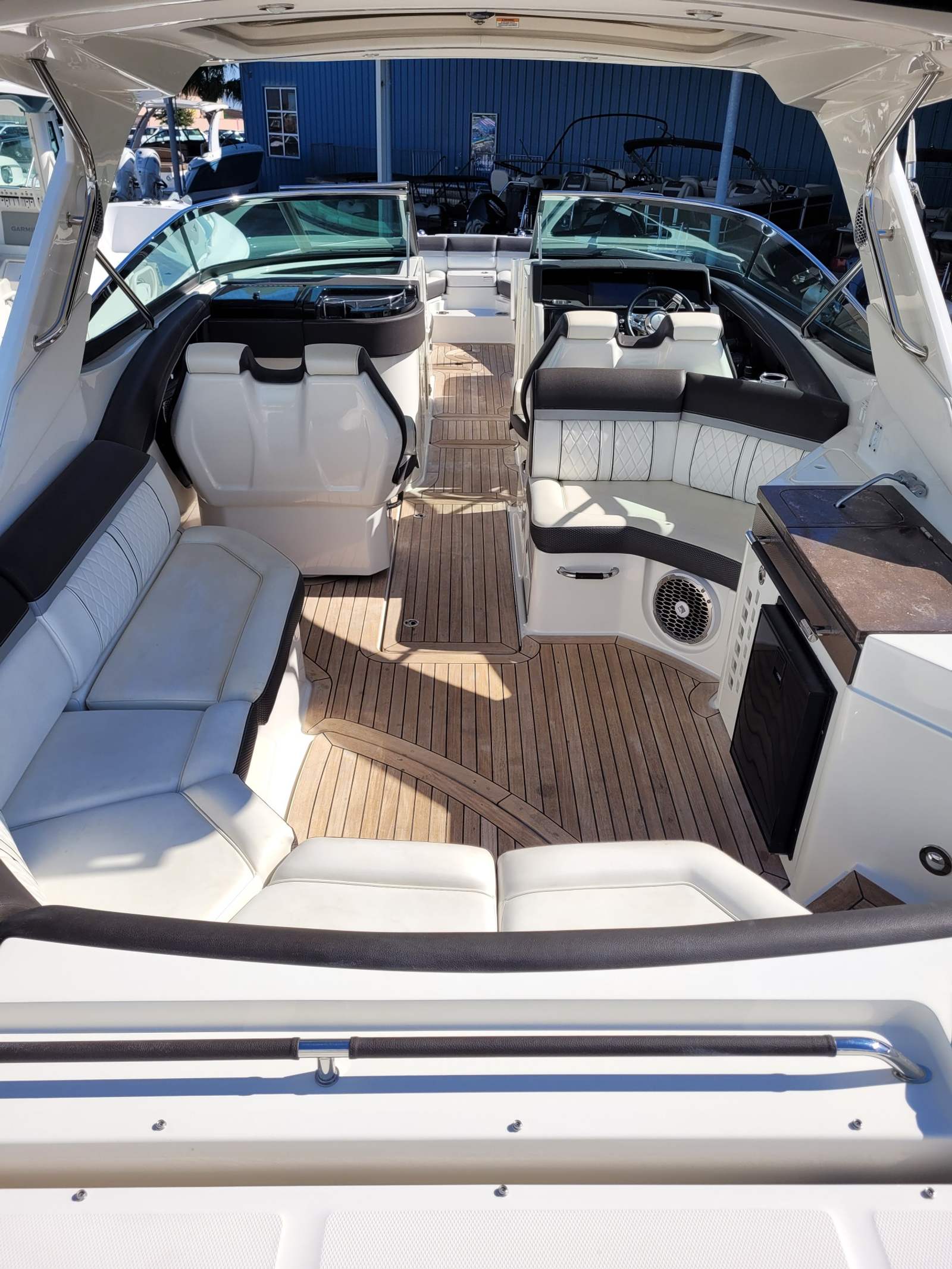 The Sea Ray SLX 350 is as practical as it is stylish. Its thoughtful design includes plenty of storage compartments for all your boating essentials, from water toys to picnic supplies. The dual engines make docking and maneuvering simple, even in tight spaces, while the boat’s efficient performance helps you make the most of every gallon of fuel. Whether you are planning a weekend getaway or a quick afternoon escape, the SLX 350 is equipped to handle all your needs with ease.