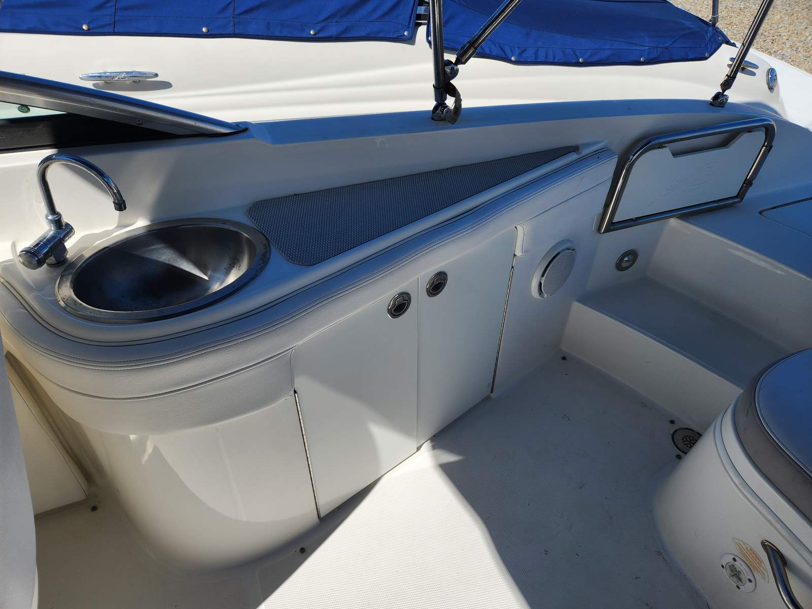 In addition to its recreational appeal, the Sea Ray Sundeck 260 offers numerous practical benefits that enhance the ownership experience. The boat’s thoughtful storage solutions keep gear organized and out of the way, allowing you to bring along everything you need for a day on the water. Docking is a breeze thanks to the manageable 28-foot length, giving you confidence in tight spaces and busy marinas. The efficient engine not only delivers impressive performance but also helps keep operating costs in check, making this cruiser boat for sale a smart investment for budget-conscious buyers. Maintenance is straightforward, and Sea Ray’s reputation for reliability means you can spend more time enjoying your boat and less time worrying about upkeep.