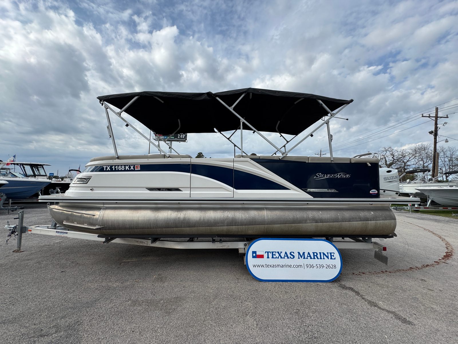 The 2022 Silverwave 2410 SW5 is a standout pontoon boat for sale that combines performance, comfort, and cutting-edge features in a stylish package. With only 23 engine hours, a powerful 200-horsepower engine, and a host of premium amenities—including a double Bimini, tandem axle trailer, Bluetooth stereo, Garmin electronics package, wireless phone charger, Wetsounds speakers, ski tow bar, and stainless prop—this used Silverwave boat for sale is ready to deliver countless days of fun and relaxation on the water.If you are searching for a versatile, well-equipped pontoon boat that excels in both leisure and adventure, the Silverwave 2410 SW5 deserves your attention. Don’t miss the opportunity to make this exceptional boat your own—contact the dealer today to learn more and start your next chapter of on-the-water excitement.