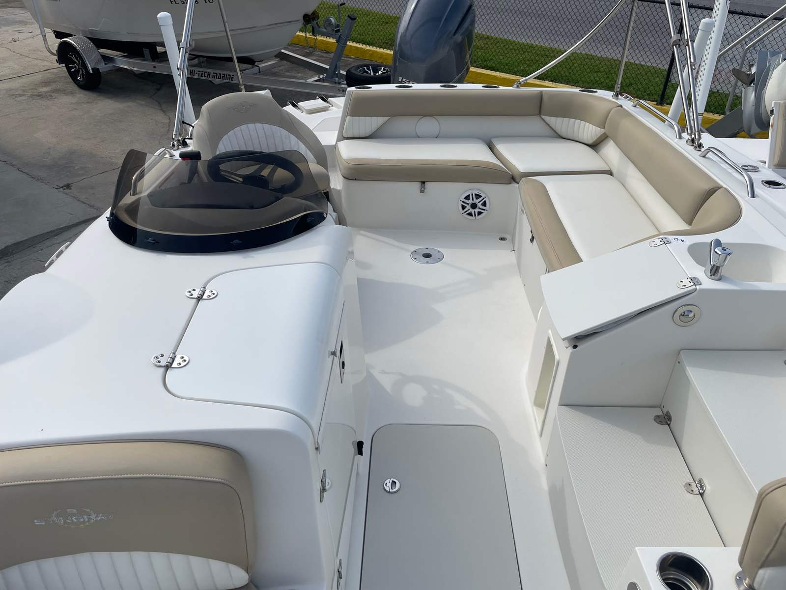 The Stingray 212 SC Deckboat is packed with features that elevate your boating experience. Its spacious deck layout provides plenty of room for relaxing, socializing, and soaking up the sun. The open design makes it easy to move around, whether you’re hosting a group of friends or enjoying a quiet day with family. The boat’s thoughtful configuration ensures everyone has a comfortable spot, with seating designed for both lounging and conversation.Storage is a breeze on the 212 SC, with dedicated compartments for gear, water toys, and personal items. The boat’s length of nearly 22 feet means you’ll have ample space for coolers, towels, and everything you need for a day on the water. The deckboat’s layout is ideal for entertaining, with areas for dining, sunbathing, and enjoying the scenery.