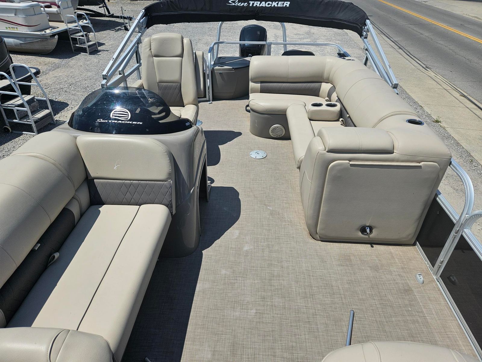 The 2021 Sun Tracker Fishin Barge 20 DLX stands out as a premier option in the world of used pontoon boats. Measuring just under 22 feet in length, this pontoon offers ample space for family and friends to relax, fish, and enjoy the open water. Its thoughtful design ensures that every inch of space is maximized for comfort and utility, making it a top contender for anyone seeking a Sun Tracker boat for sale. The used condition of this vessel means you can enjoy all the benefits of a high-quality pontoon at a more accessible price point, without compromising on style or performance.