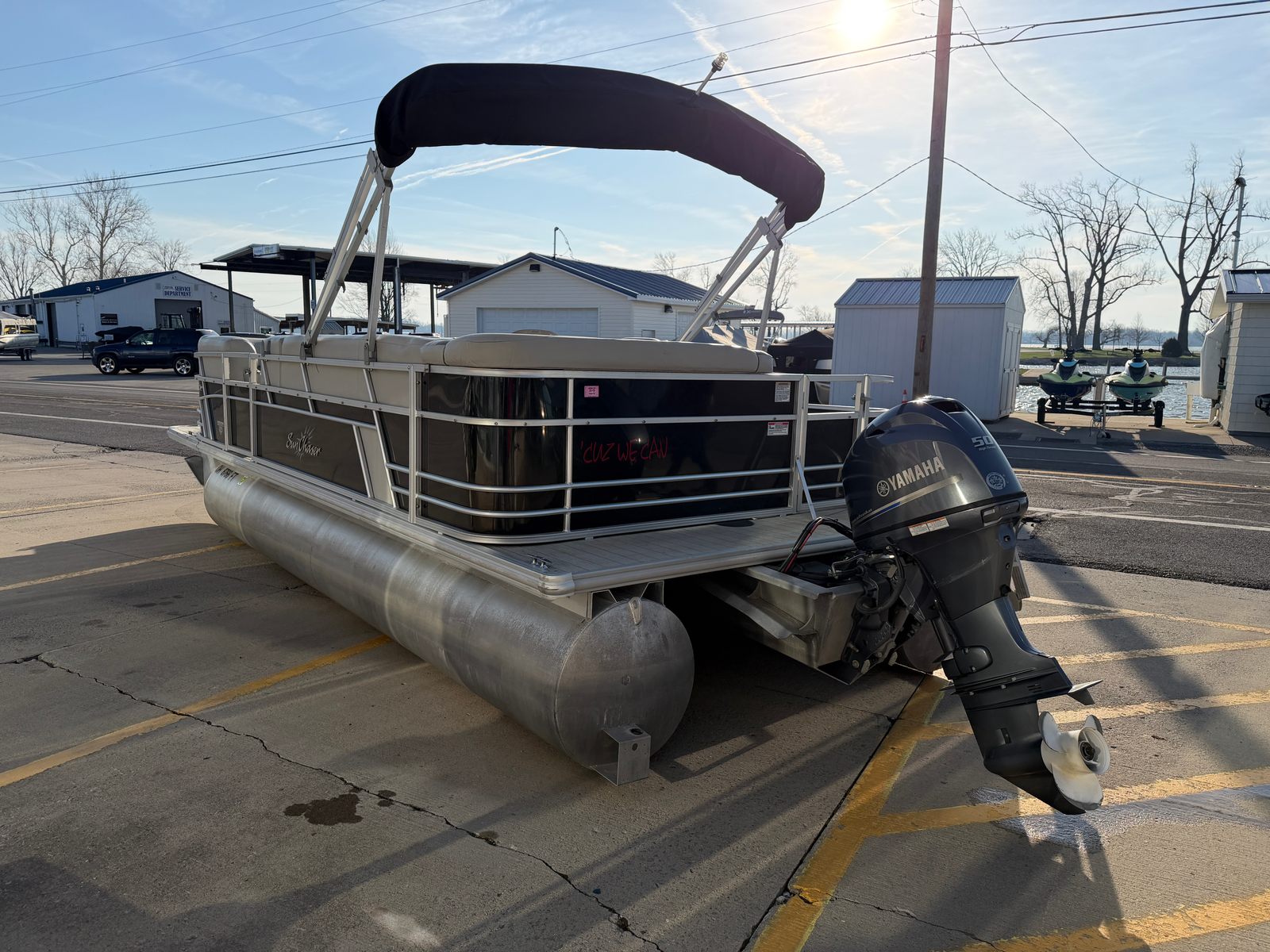 The Sunchaser Geneva 22 is designed with comfort and convenience in mind. Its spacious 22-foot deck offers plenty of room for family and friends to relax, socialize, and soak up the sun. The open layout makes it easy to move around, while the comfortable seating ensures everyone has a great spot to enjoy the view. The pontoon’s sturdy construction and quality materials reflect Sunchaser’s reputation for building boats that last, giving you peace of mind as you cruise your favorite waterways.This used pontoon boat for sale is a great choice for those who appreciate a blend of style and practicality. The Geneva 22’s thoughtful design includes ample storage space for all your gear, making it easy to bring along everything you need for a day on the water. Whether you are packing picnic supplies, water toys, or fishing equipment, you will find plenty of room to keep your essentials organized and out of the way.