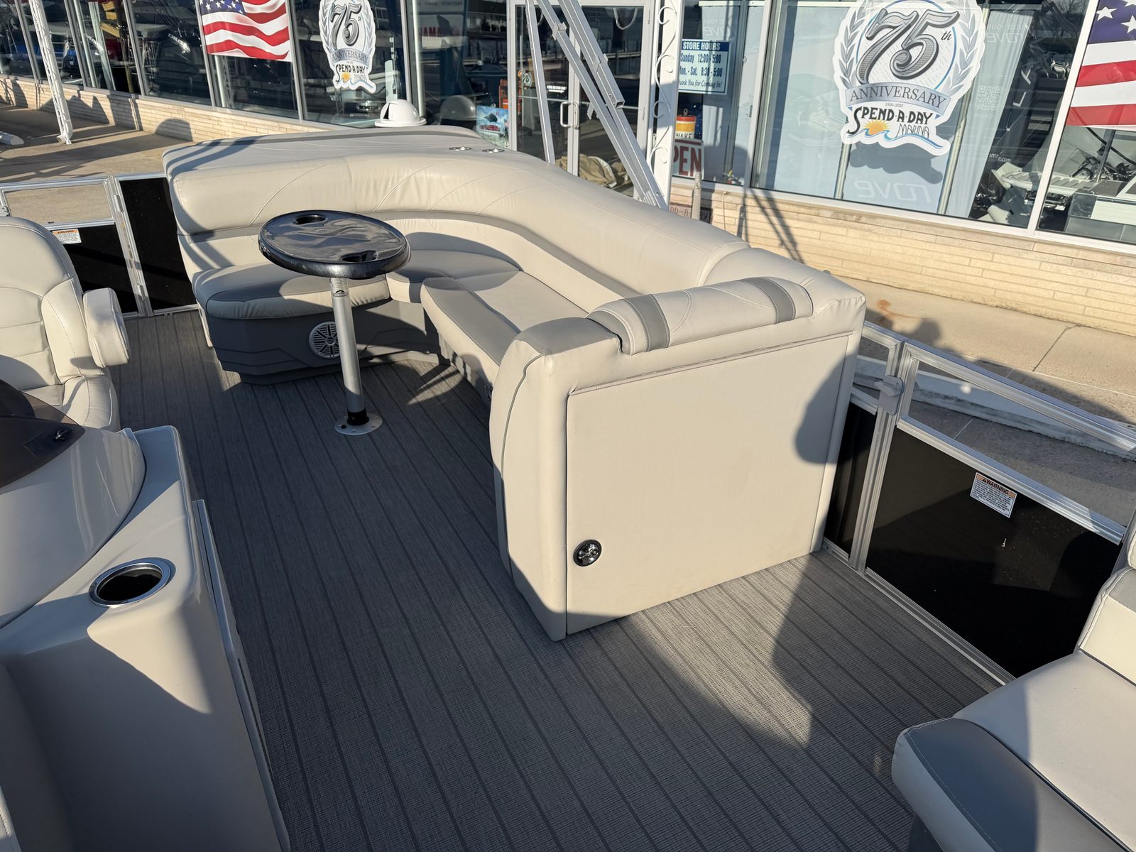 The 2018 Sunchaser Geneva 22 is a 22-foot pontoon boat that exemplifies the brand’s commitment to quality and innovation. Known for their durability and user-friendly layouts, Sunchaser boats are a favorite among boating enthusiasts who value both relaxation and recreation. This particular model, with its generous length and well-thought-out design, offers ample space for passengers to stretch out and enjoy the ride. As a used pontoon boat, the Geneva 22 provides excellent value, allowing you to enjoy premium features and a trusted name without the new-boat price tag.