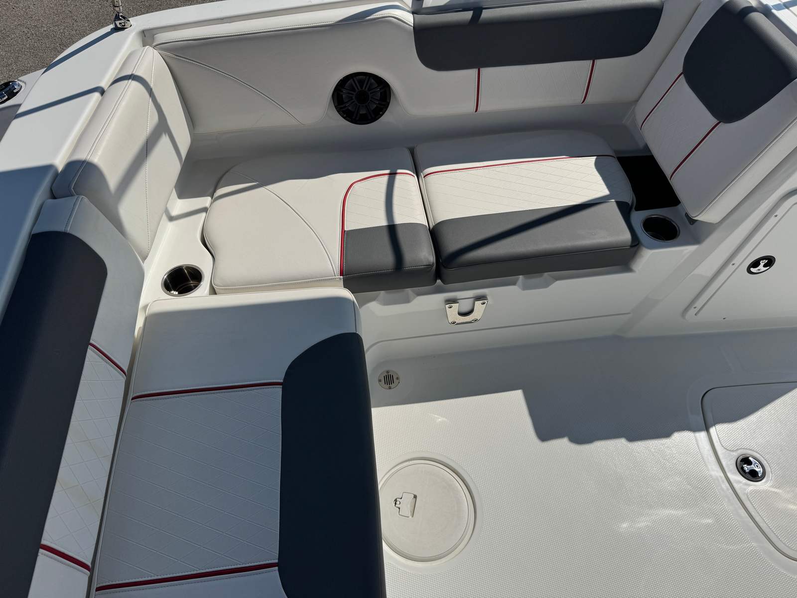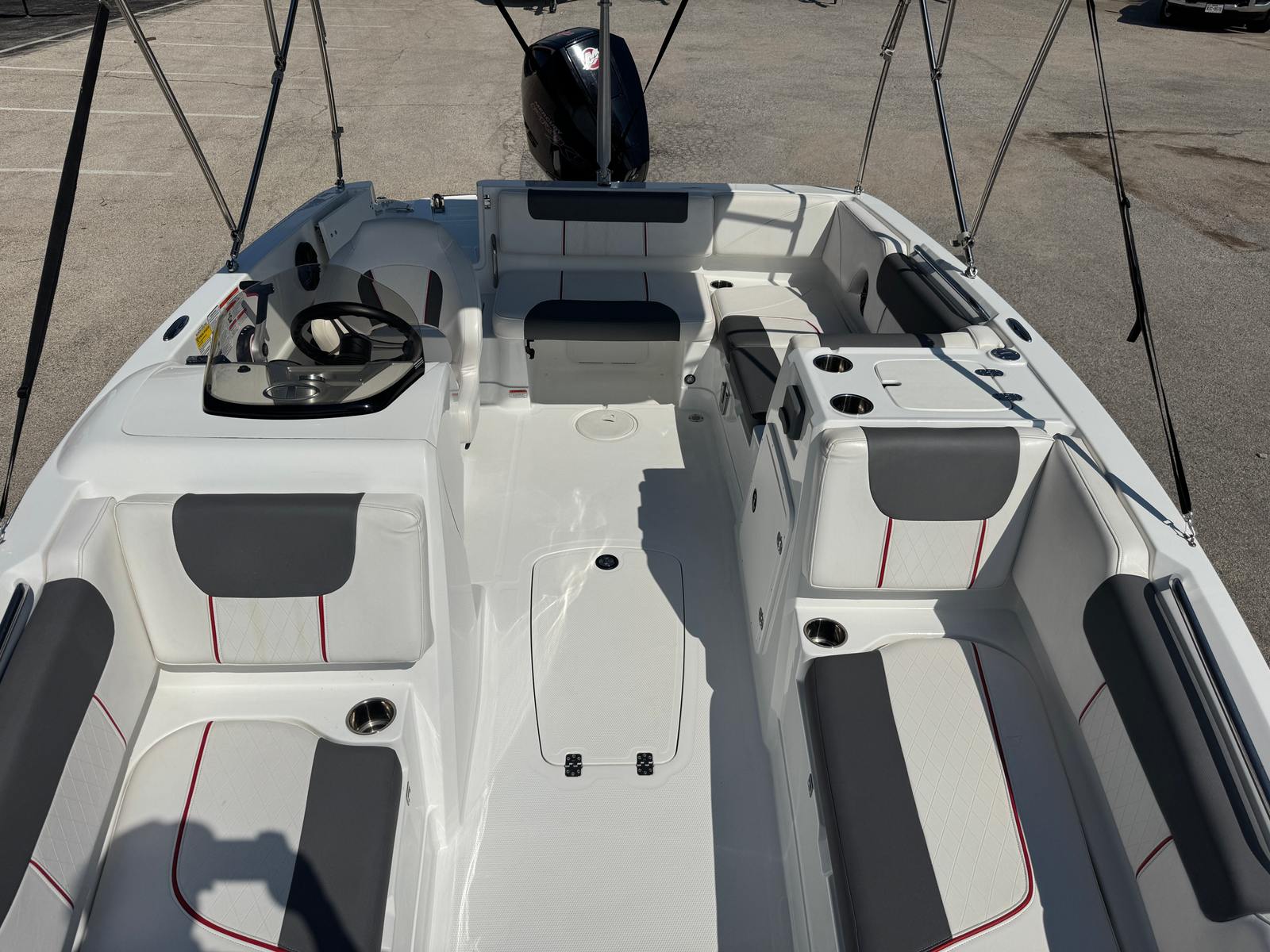The 2021 Tahoe 1950 Deckboat is as practical as it is enjoyable. Its manageable 19-foot length makes it easy to store, trailer, and dock, so you can spend less time worrying about logistics and more time enjoying the water. The efficient engine provides a great balance of power and fuel economy, allowing you to maximize your time on the water without breaking the bank. Whether you are navigating busy marinas or exploring quiet lakes, the Tahoe 1950’s responsive handling and compact size make it a breeze to operate.This deckboat is also designed with convenience in mind, offering ample storage for all your boating essentials. From life jackets to fishing gear to water toys, you will have plenty of space to keep everything organized and within reach. The intuitive controls and easy-to-read gauges make piloting the Tahoe 1950 straightforward and stress-free, so you can focus on having fun and making memories.