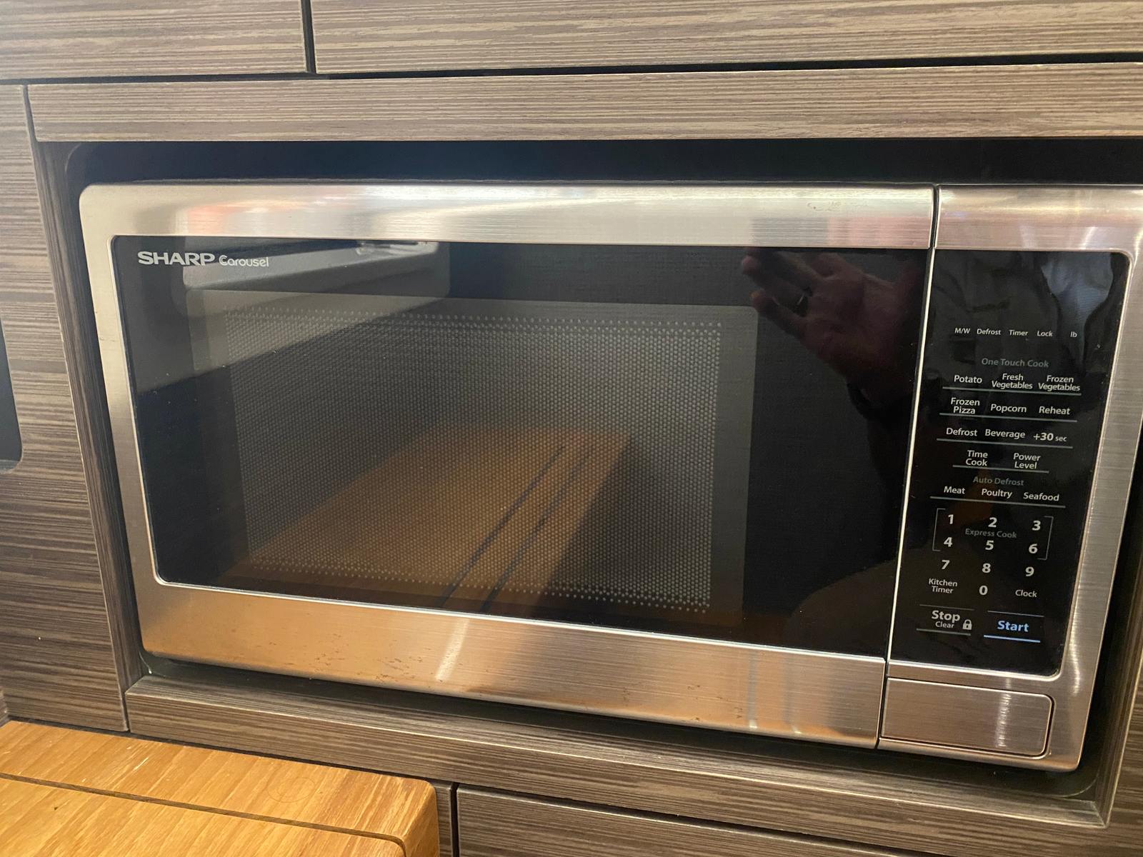• Cabin: Below deck, an elegant, air-conditioned cabin awaits, featuring a double berth, a full-size flat-screen TV, a microwave, and a private, enclosed head compartment with a separate shower and VacuFlush toilet system.