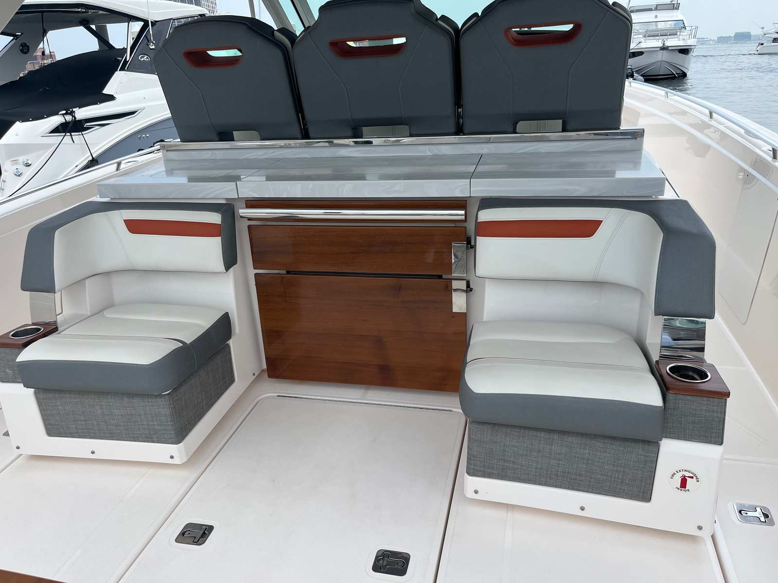 In addition to its luxurious amenities, the Tiara Yachts 38 LS is designed with practicality in mind. The ample storage space makes it easy to keep the deck organized and clutter-free, while the intuitive layout ensures that everything you need is always within reach. Docking and maneuvering are simplified by the yacht’s responsive handling and advanced controls, making it easy to navigate even in tight spaces.Fuel efficiency is another key benefit of the Tiara Yachts 38 LS. The triple-engine configuration is optimized for both power and economy, allowing you to enjoy longer trips without worrying about frequent refueling stops. This makes the 38 LS an excellent choice for those who love to explore new destinations and spend extended time on the water.