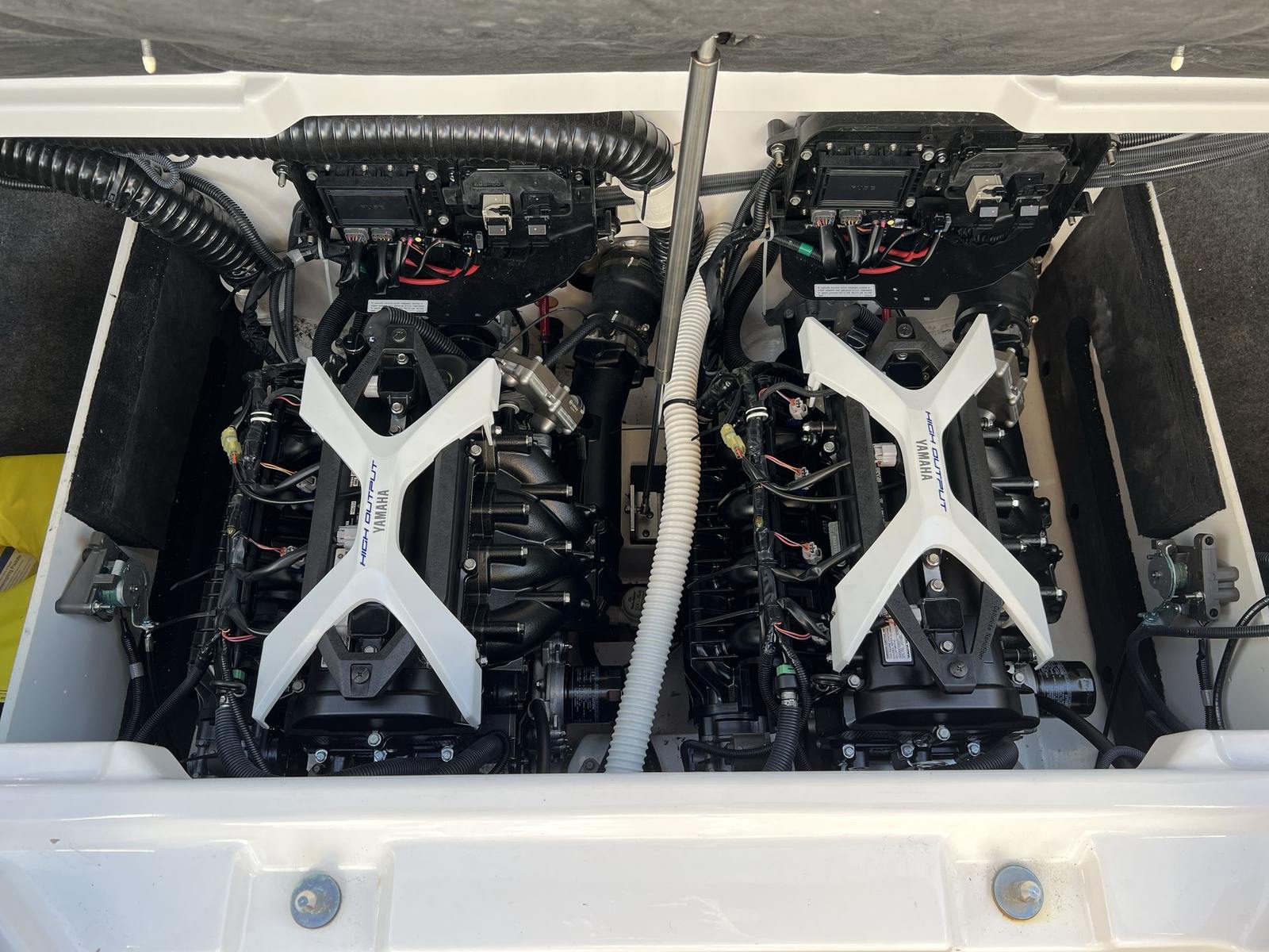 Under the hood, the Yamaha 222 S is powered by twin engines, delivering a combined 400 horsepower for thrilling acceleration and responsive handling. The dual-engine setup ensures optimal maneuverability, allowing you to navigate tight turns, shallow waters, and busy docks with confidence. Whether you are cruising at a leisurely pace or pushing the throttle for high-speed excitement, this jet boat offers a performance profile that is both exhilarating and reliable. With only 24 engine hours, the powerplants are barely broken in, promising many more seasons of dependable fun on the water.