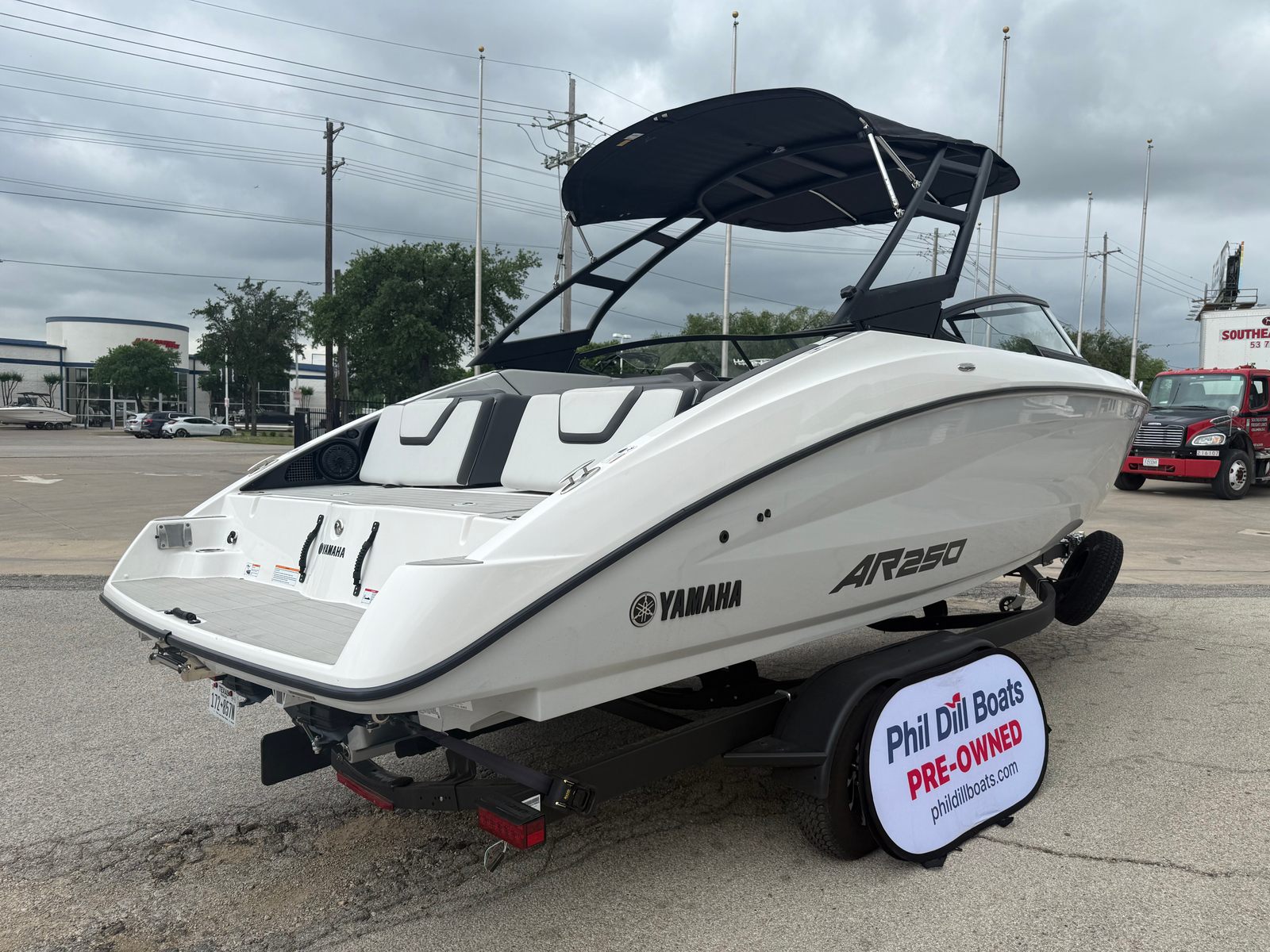 The 2025 Yamaha AR250 is a jet boat that perfectly blends performance, versatility, and style. As a used jet boat for sale, it offers exceptional value for those who want to enjoy the latest in marine innovation without the price tag of a brand-new vessel. Measuring 24.5 feet in length, this Yamaha boat for sale provides ample space for friends and family, ensuring everyone has room to relax, socialize, and enjoy the ride. The AR250’s modern design and attention to detail make it a true head-turner, whether you’re cruising the lake, exploring coastal waters, or anchoring at your favorite sandbar.